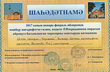Выражается благодарность коллективу МБДОУ№26 "Ёлочка" за организацию и проведение мероприятий по изучению наследия педагога Р. Фахретдина 03.04.2017