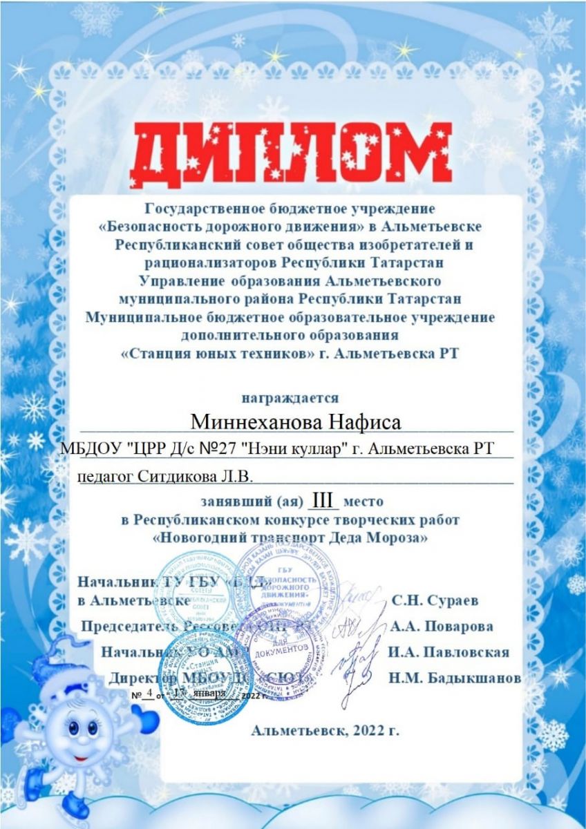 • Муниципальное бюджетное дошкольное образовательное учреждение «Центр развития ребенка - детский сад №27 «Нэни куллар» г. Альметьевска/Әлмәт шәһәренең "Баланың сәләтен үстерү үзәге 27-нче "Нэни куллар" балалар бакчасы» муниципаль бюджет мәктәпкәчә белем бирү учреждениесе