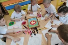 С дошкольного возраста нужно воспитывать детей гражданами своей малой и большой Родины. Поэтому необходимо, кроме элементарных сведений о Республике, в которой они проживают, дать ознакомительные сведения о гербе и флаге Республики Татарстан. Сегодня с детьми старшей группы "Ладушки" разукрашивали герб нашей Республики.