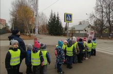 Экскурсия в Комсомольский парк с воспитанниками старшей группы "Ладушки". Воспитатель Коннова Л.А. закрепила с детьми знания правил дорожного движения.