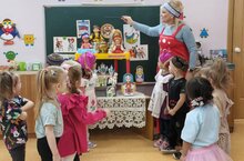 Царство дымковской игрушки". Ребята средней группы "Капитошка" посетили минимузей народной игрушки, познакомились с различными видами росписей и посудой народов России. -