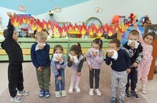 Дети старшей группы "Дружба" закрепили свои знания по пожарной безопасности подвижной игрой "Спасение от огня".