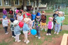 В завершении мероприятия ребята подарили детям младшей группе шары