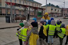 Сегодня воспитанники старшей группы «Улыбка» совершили экскурсию к троллейбусной остановке.