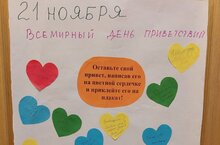 Дети старший группы "Улыбка" готовились к этому празднику. С ребятами сделали вот такую стенгазету , где мы дружно вырезали символ этого дня - ладошки... Приклеили и написали на них самое популярное слово приветствия.
