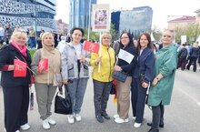 На площади Ленина прошло торжественное прохождение трудовых коллективов. Наш коллектив принял участие в мероприятии.