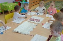"День музеев" в 1 младшей группе "Ладушки". Рисование нетрадиционным методом с помощью ватной палочки методом тычка на тему "Украшаем полотенце".