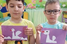 "День геометрических фигур" в подготовительной группе "Салават Купере". Аппликация из геометрических фигур "Плывёт лебедь".