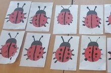 Цель: Продолжать знакомить детей с нетрадиционной техникой рисования - пальчиками. Продолжать знакомить с основными цветами (красный,черный). Закреплять знания о насекомых,развивать мелкую моторику рук.