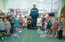 Сюрпризным моментом для детей был показ мультфильма Смешарики "Безопасность во время пожара". Затем ребята соревновались в командах, кто быстрее соберёт пазлы на тему "Профессии")