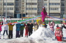 Россия богата своими традициями, обычаями, народными праздниками. Одним из таких праздников является большое народное гулянье в конце зимы «Масленица». Здесь всегда находятся желающие силой потягаться, удаль свою показать, вкусными блинами угоститься да песни попеть. Масленица один из самых радостных и светлых праздников, в котором наши ребята приняли активное участие. Спасибо музыкальному руководителю и инструктору по физической культуре за проведение отличного праздника.