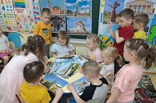 Сегодня с ребятами группы "Умельцы " провели беседу "Мой родной город -Альметьевск, Республика моя -Татарстан". Рассматривали достопримечательности нашего города, играли в дидактическую игру "Воображаемая прогулка по Альметьевску"