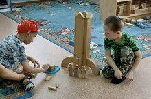 поиграли в подвижную игру "Космонавты". А потом построили ракету. -