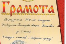 Поздравляем Понамореву Альфию Рашитовну за I место в конкурсе плакатов "Сохрани природу" 18.06.2015