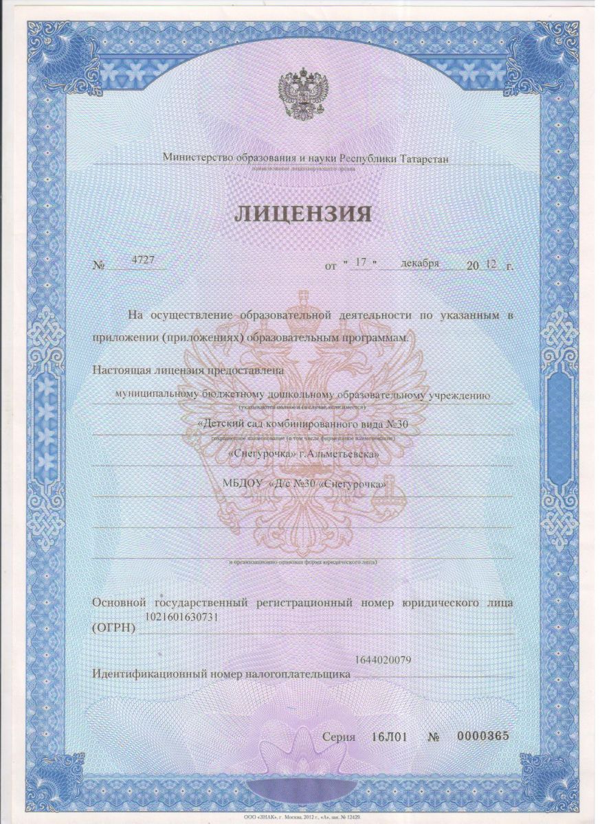 МБДОУ «Детский сад комбинированного вида №30 «Снегурочка» Альметьевского муниципального района Республики Татарстан /"Татарстан Республикасы Әлмәт муниципаль бюджет мәктәпкәчә белем бирү учреждениесе 30 нче катнаш төрдәге "Кар кызы" балалар бакчасы"
