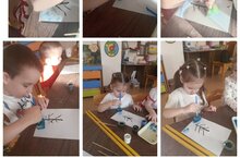 Предложила детям превратиться в художников и изобразить деревья в снегу.