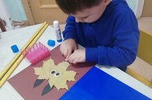 Аппликация в средней группе на тему "Волк из кленового листочка". Цель : учить детей делать аппликацию из листьев клена. 16.10.2024
