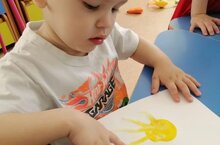 Нетрадиционное рисование, размазывание краски гуаша через файл на бумагу. 01.04.2024