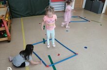 Сегодня, у нас необычная математика. Сопоставили цвета, поиграли в дидактическую игру " Найди свой цвет", построили из гимнастических палок - квадрат. И, как, здорово, работать в команде.