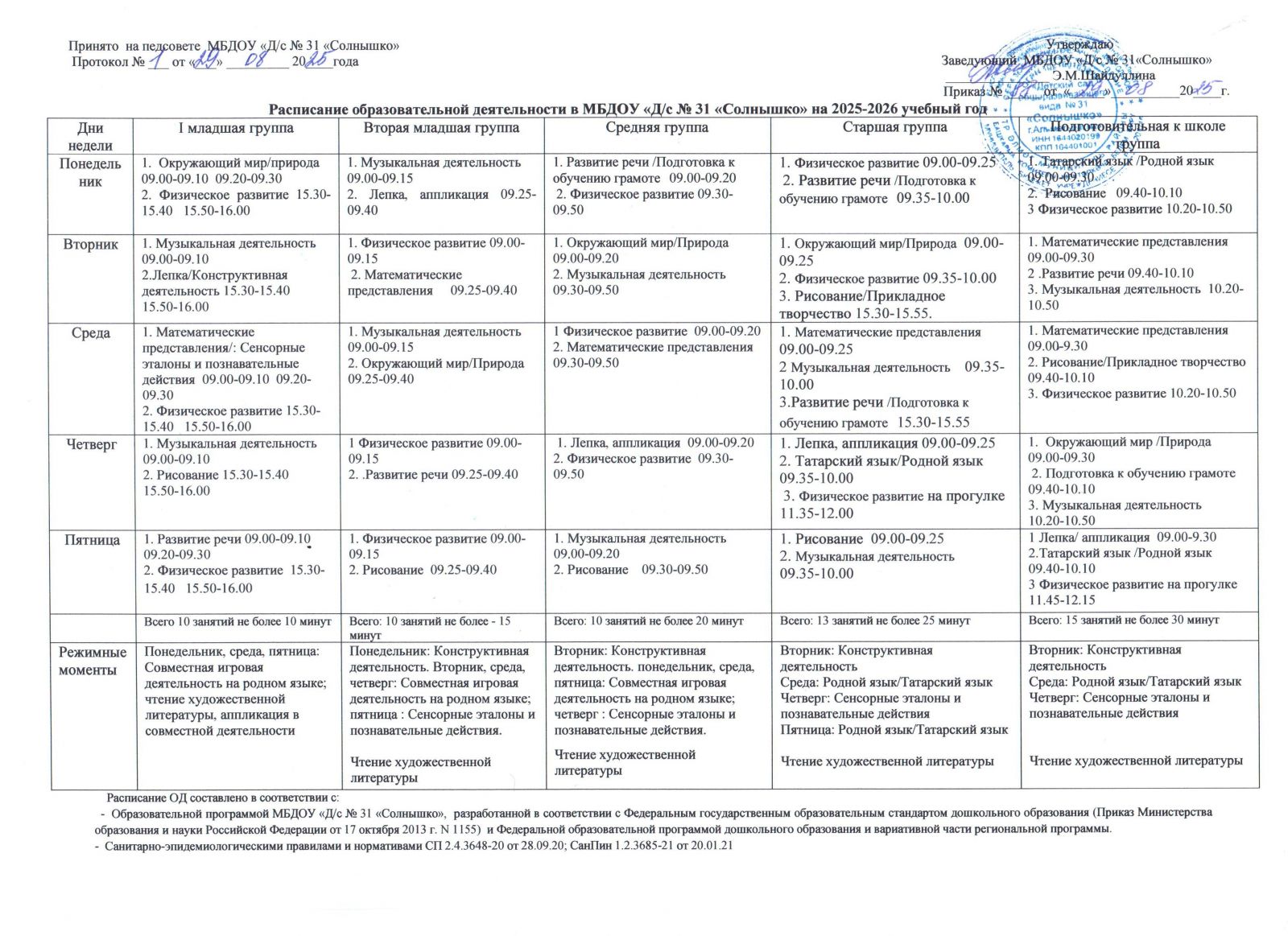 Расписание образовательной деятельности на 2025-2026 учебный год