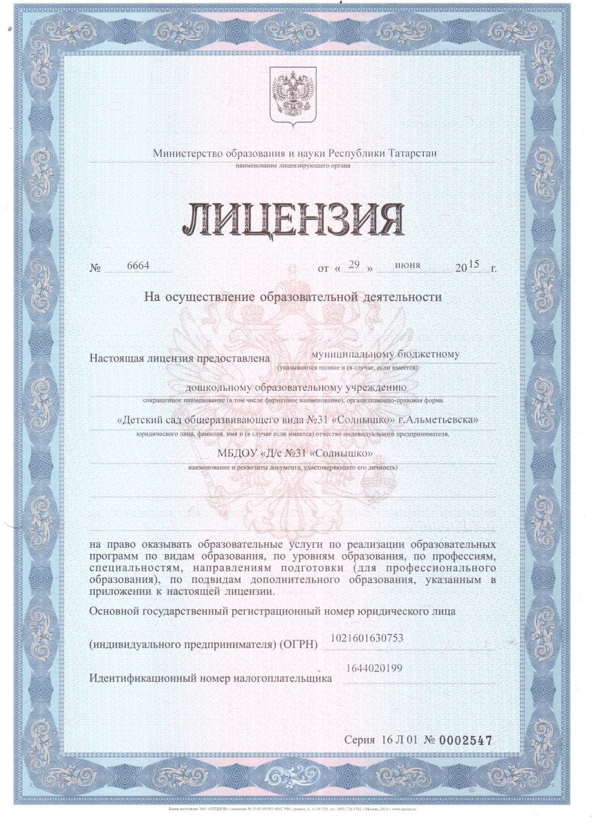 Лицензия на осуществление образовательной деятельности (1 страница)