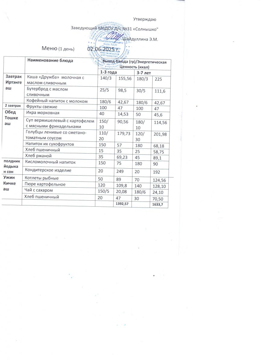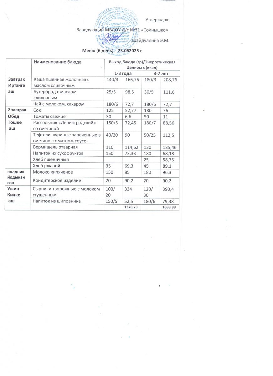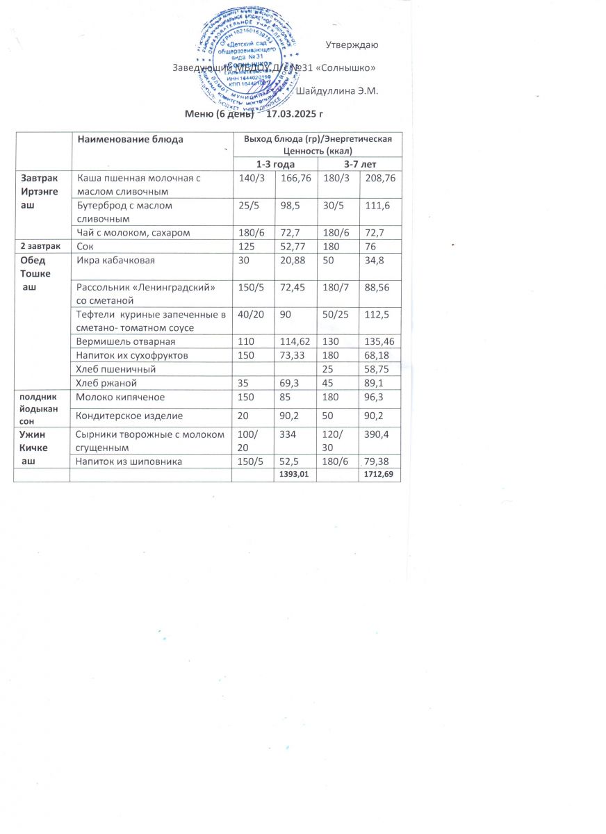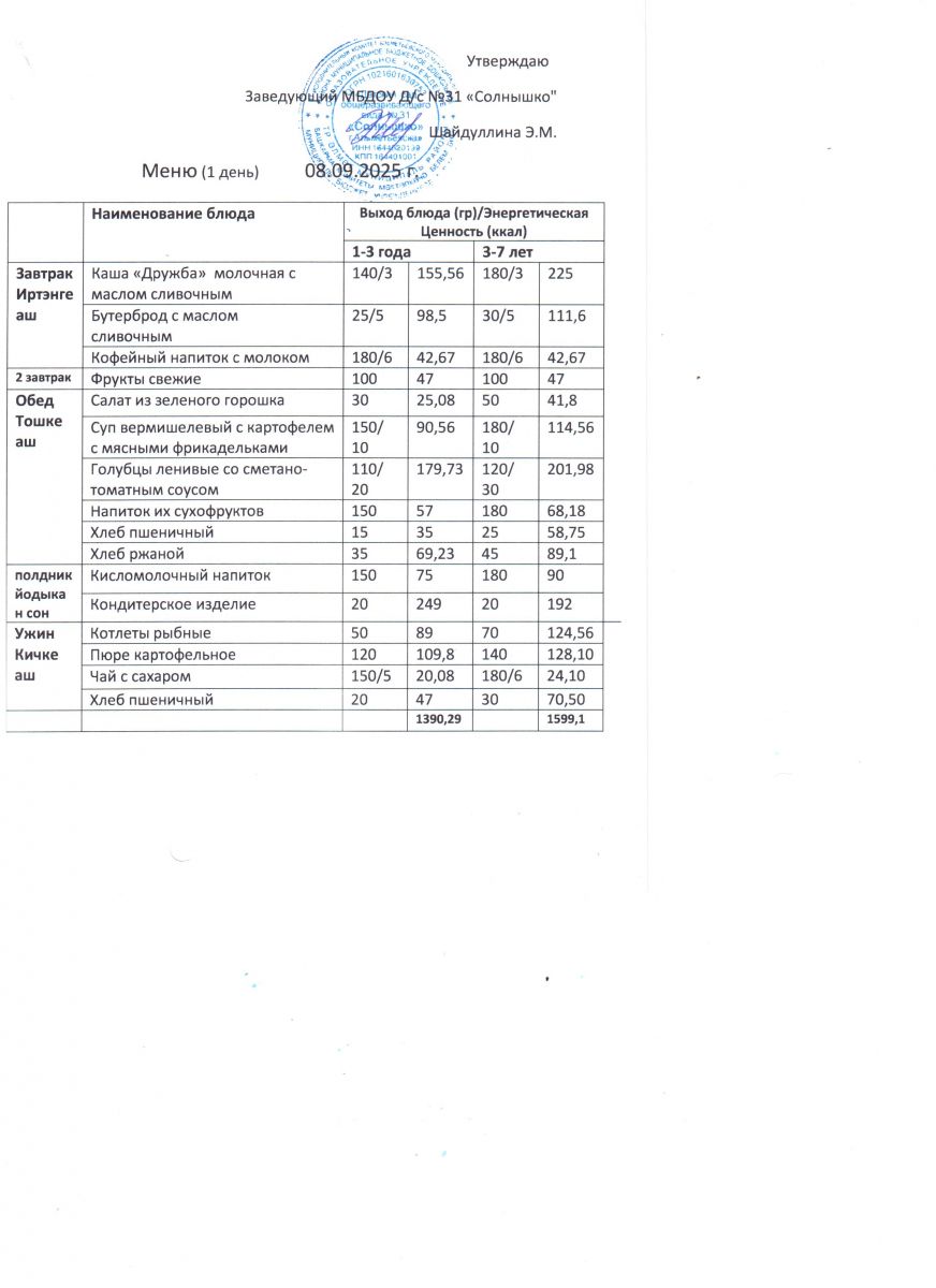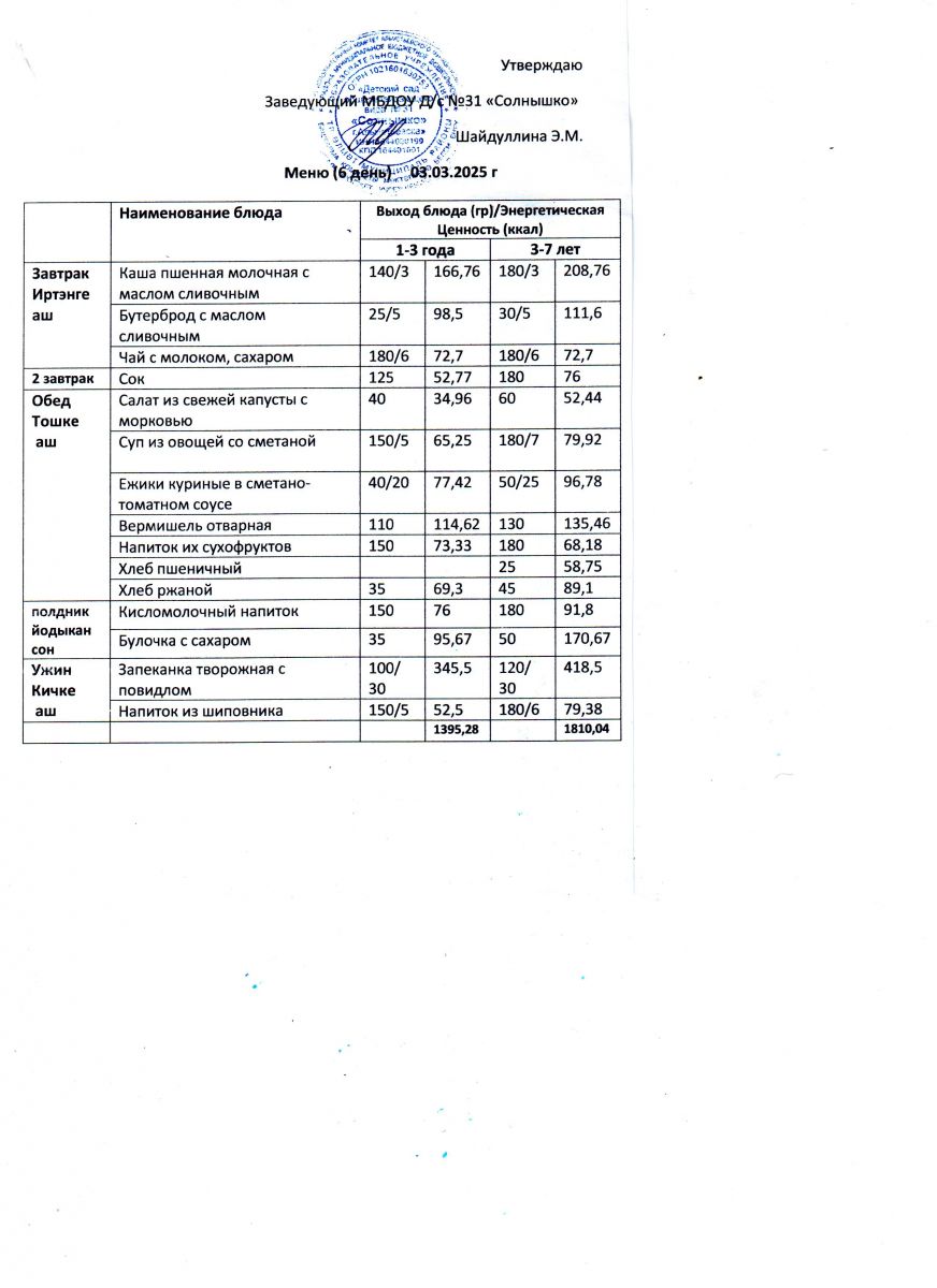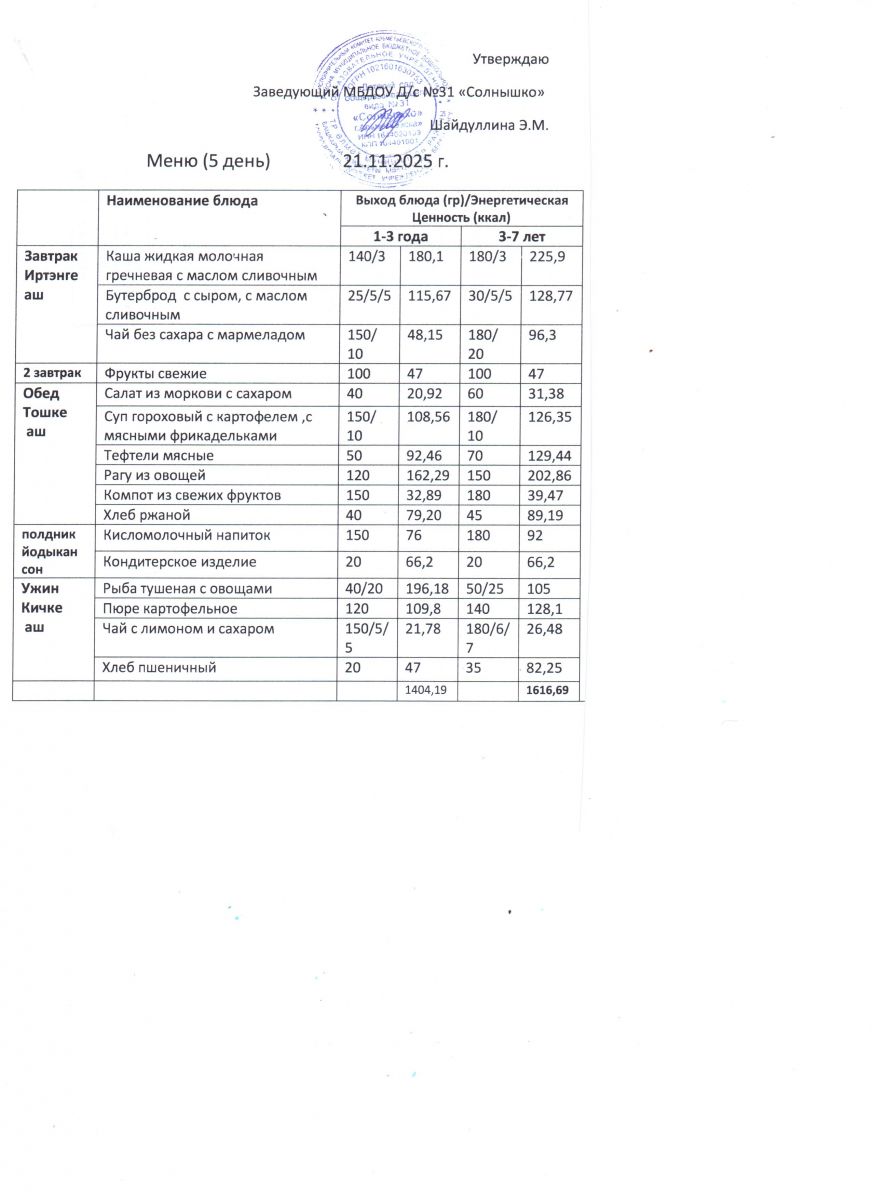 Меню ежедневного горячего питания