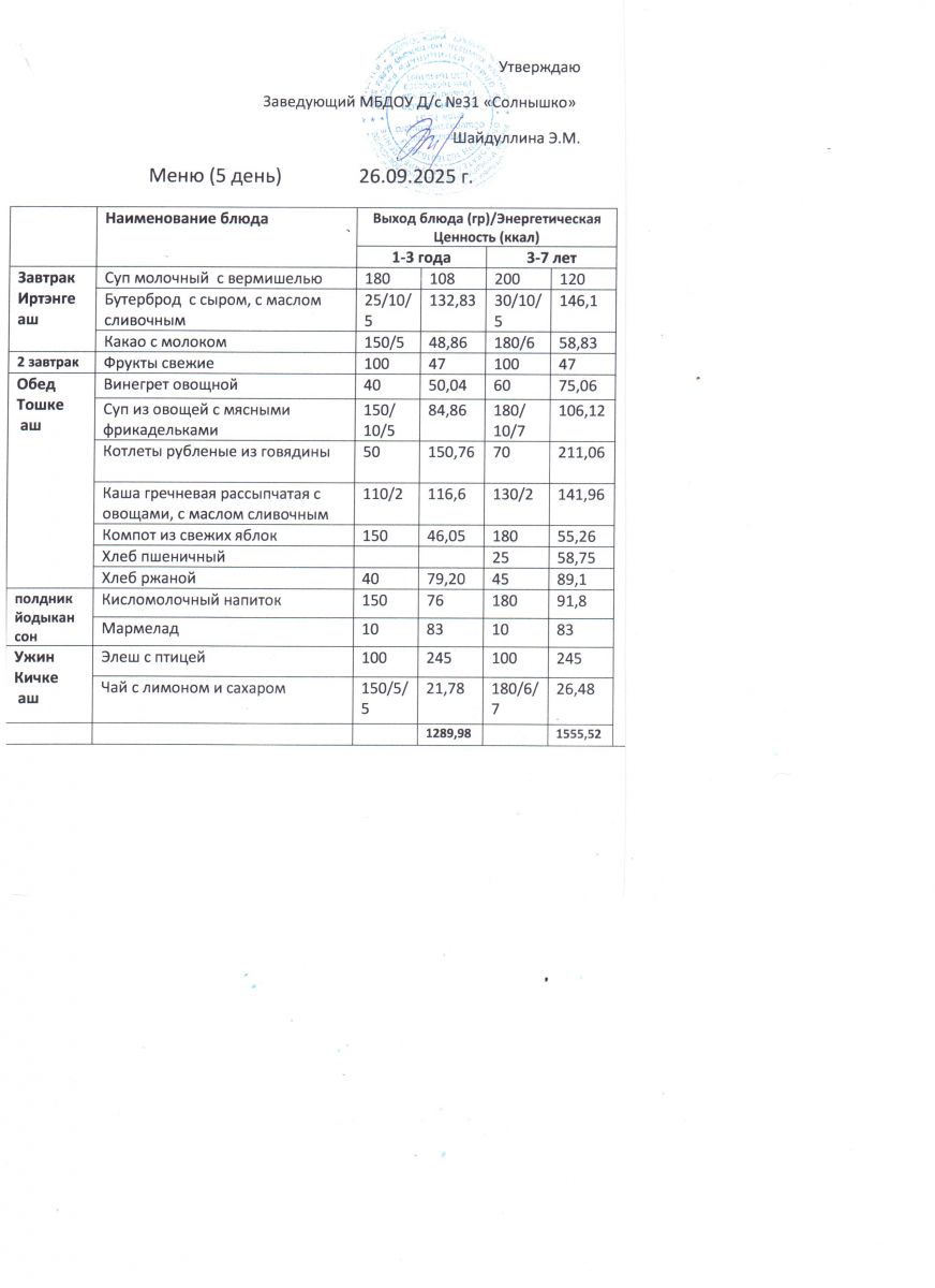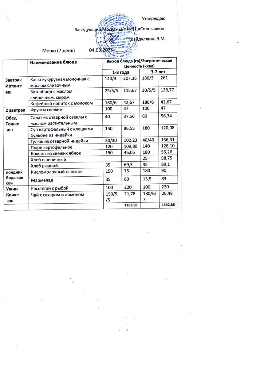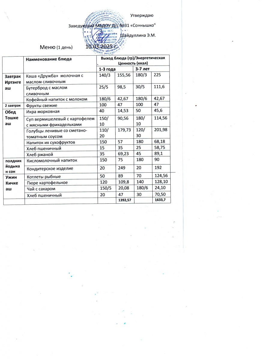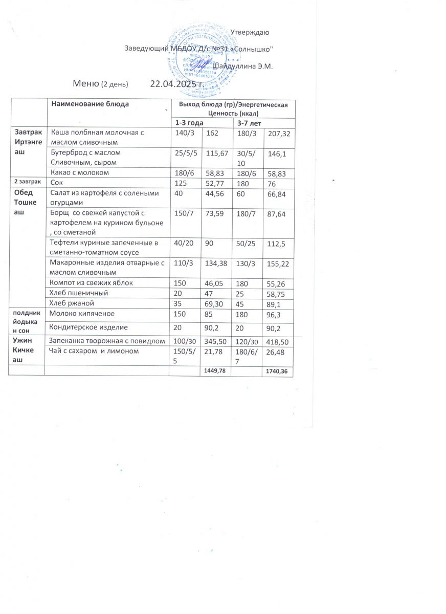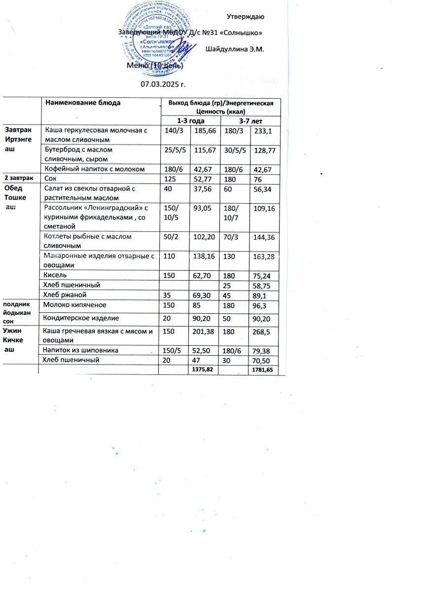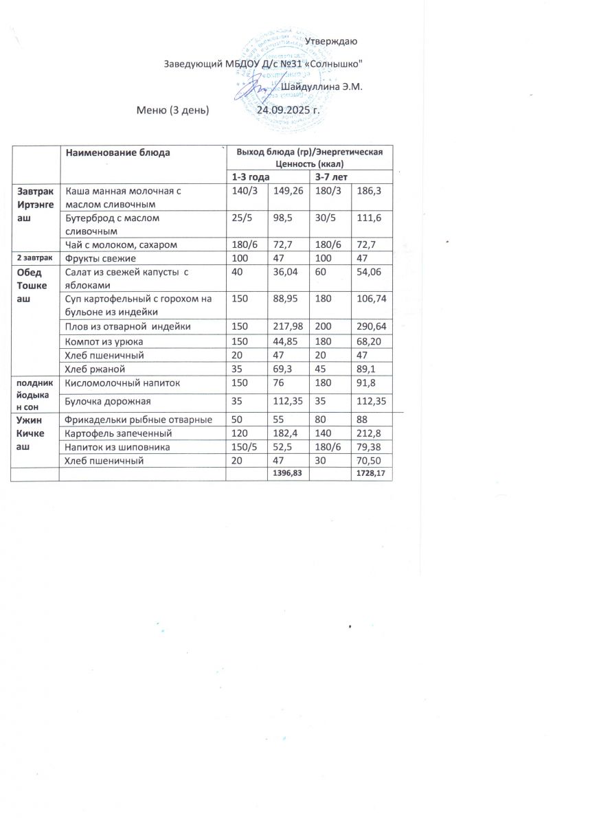 Меню ежедневного горячего питания