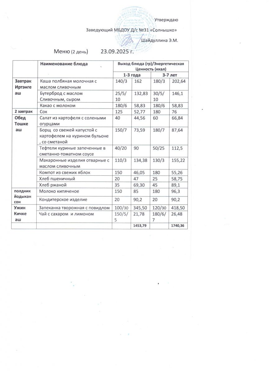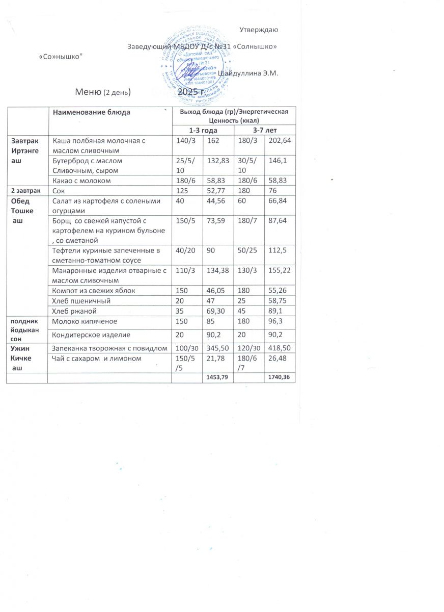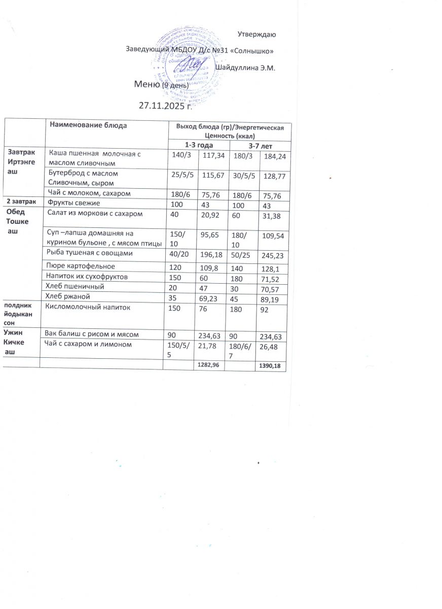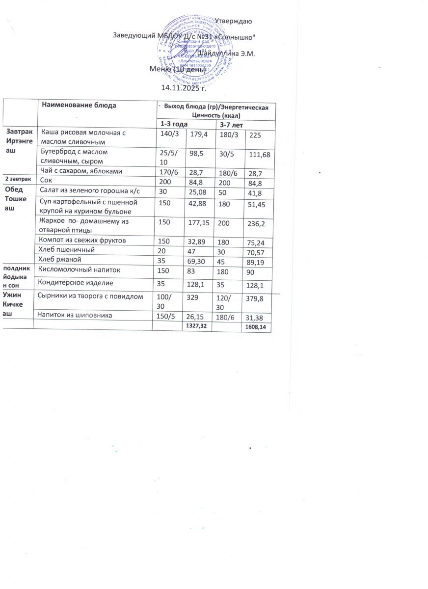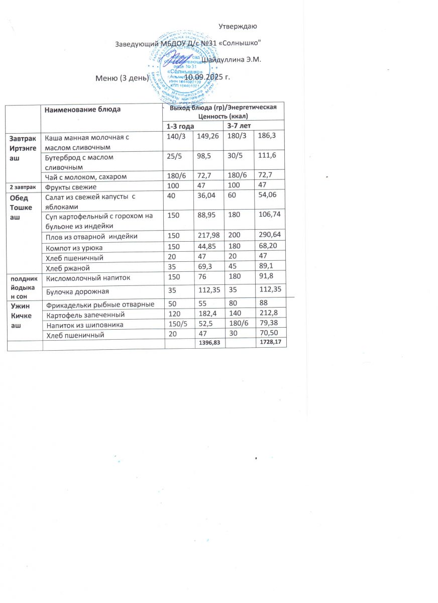 Меню ежедневного горячего питания