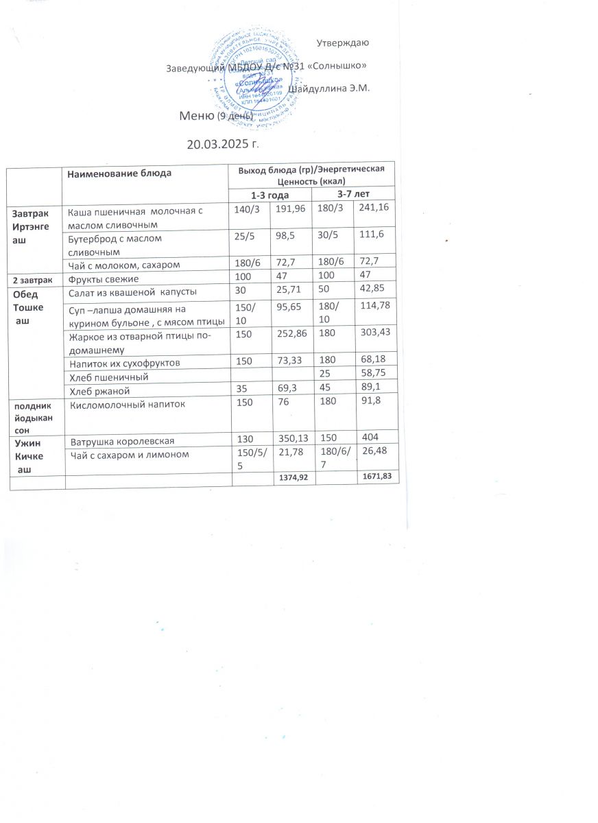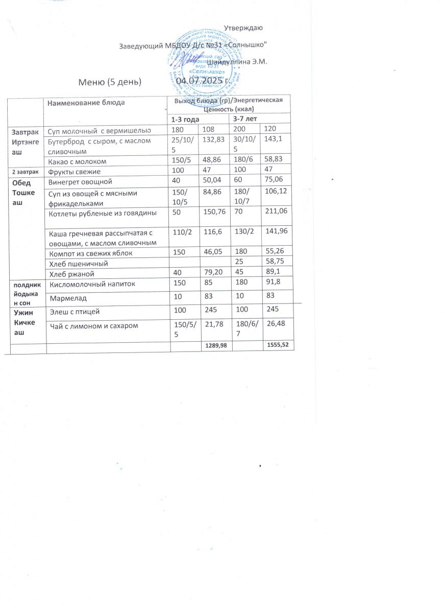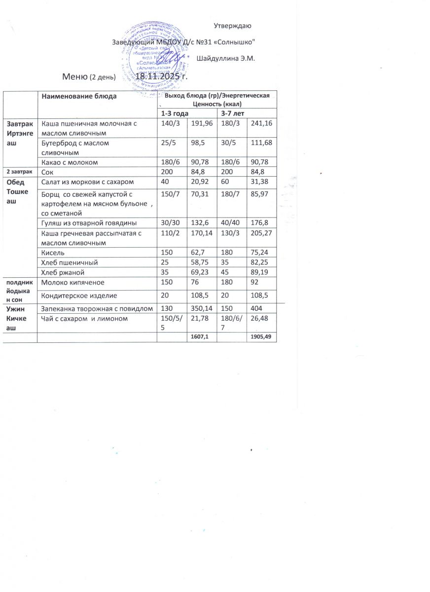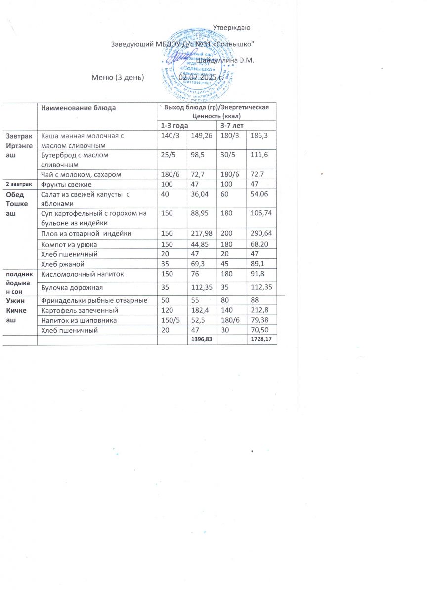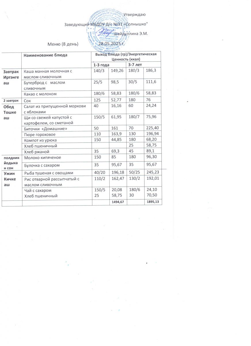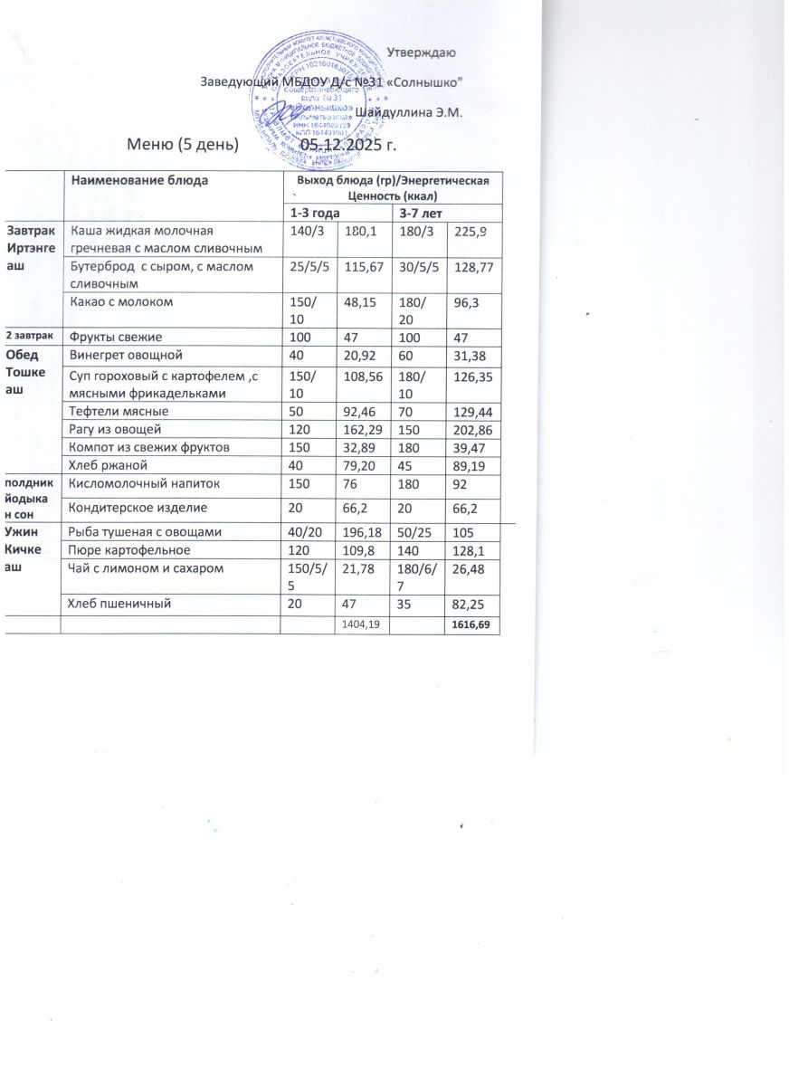 Меню ежедневного горячего питания