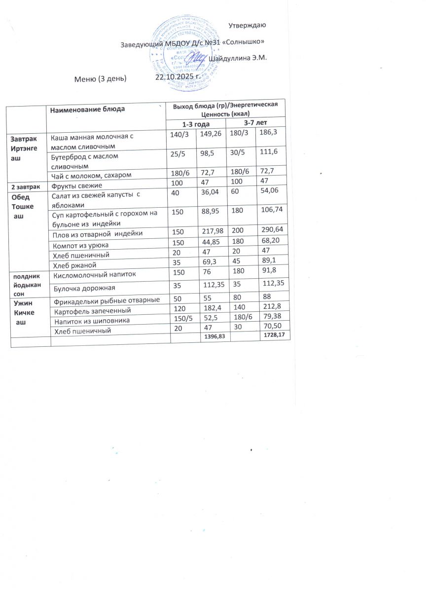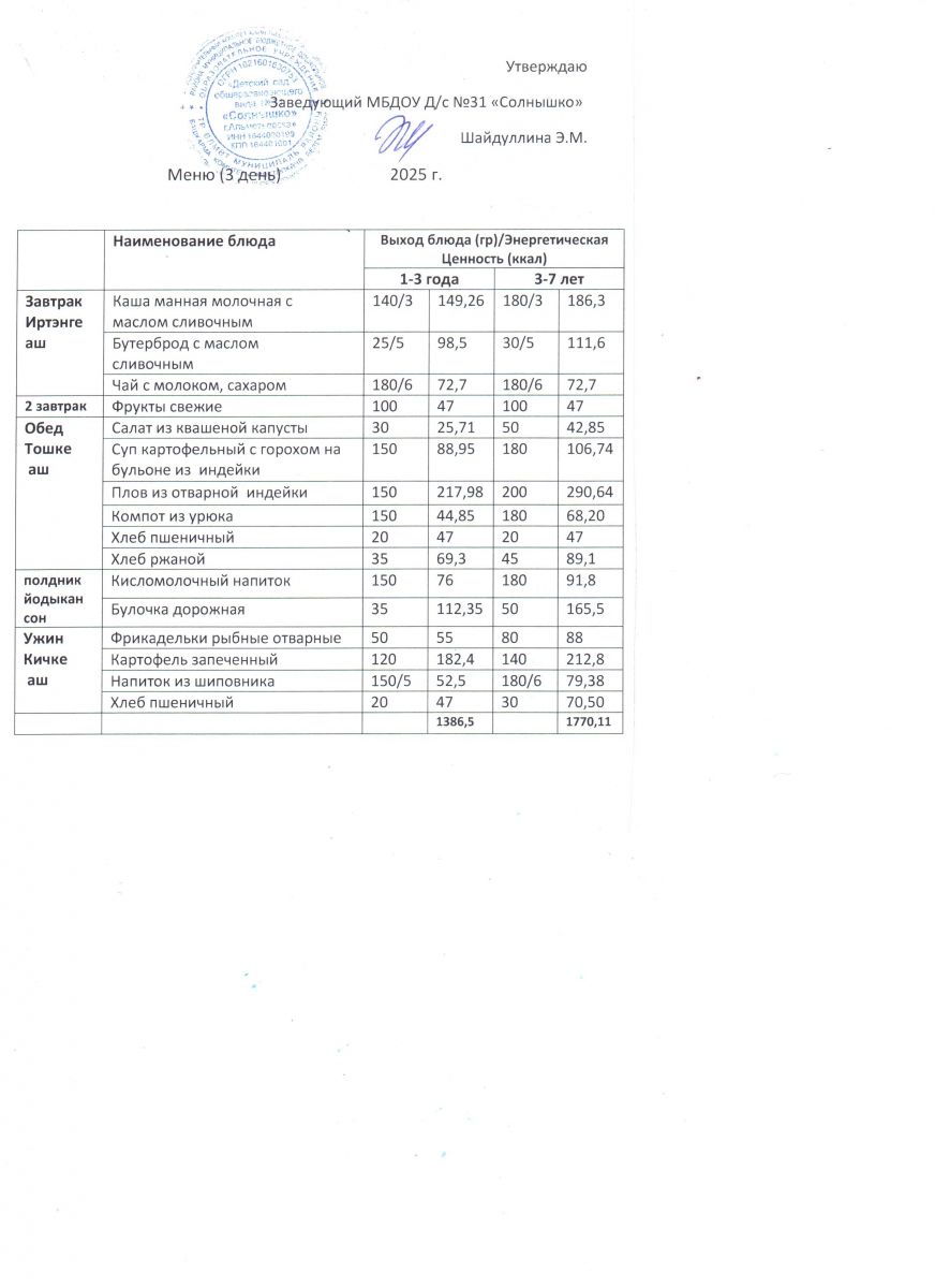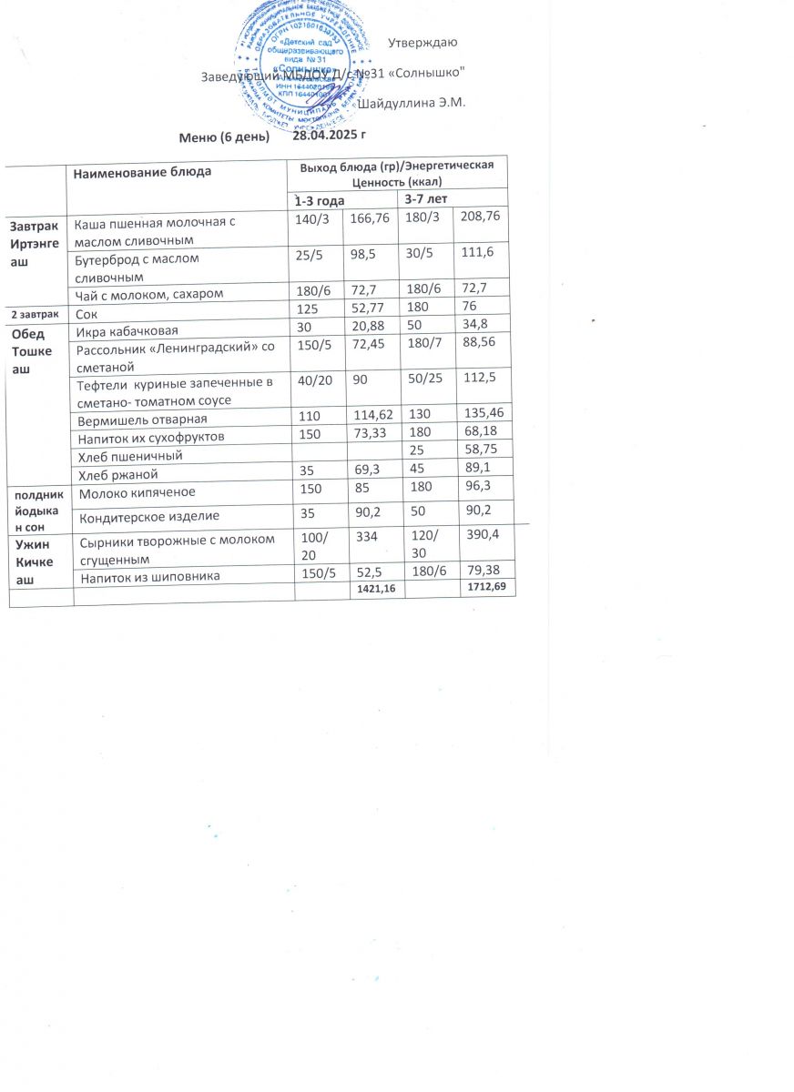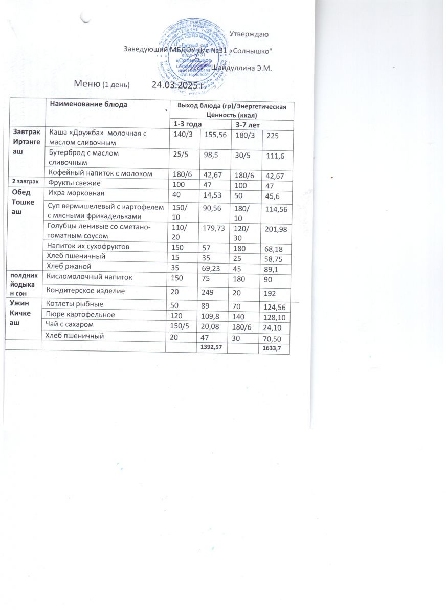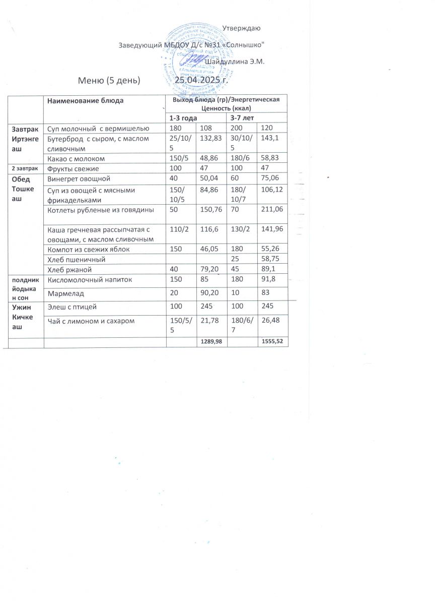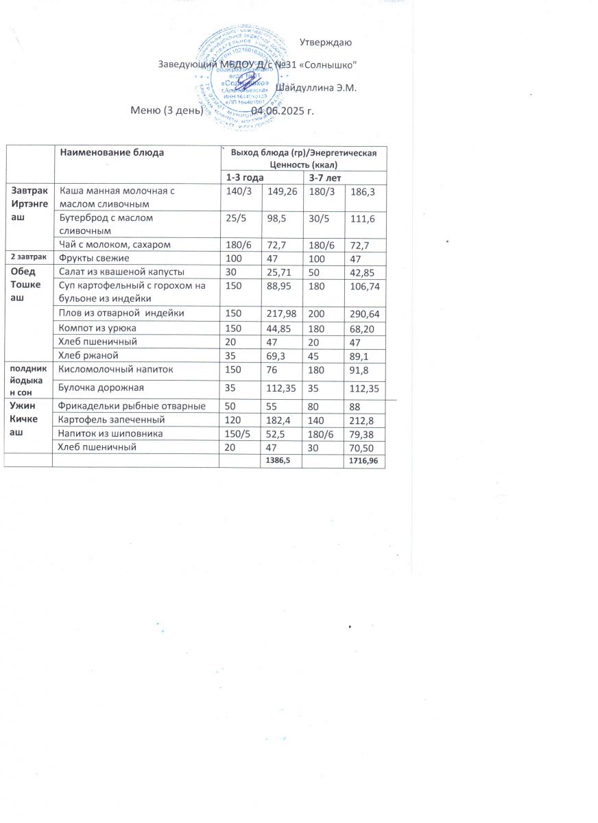 Меню ежедневного горячего питания
