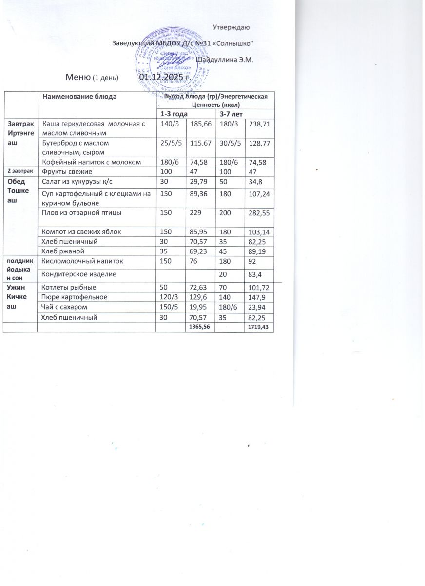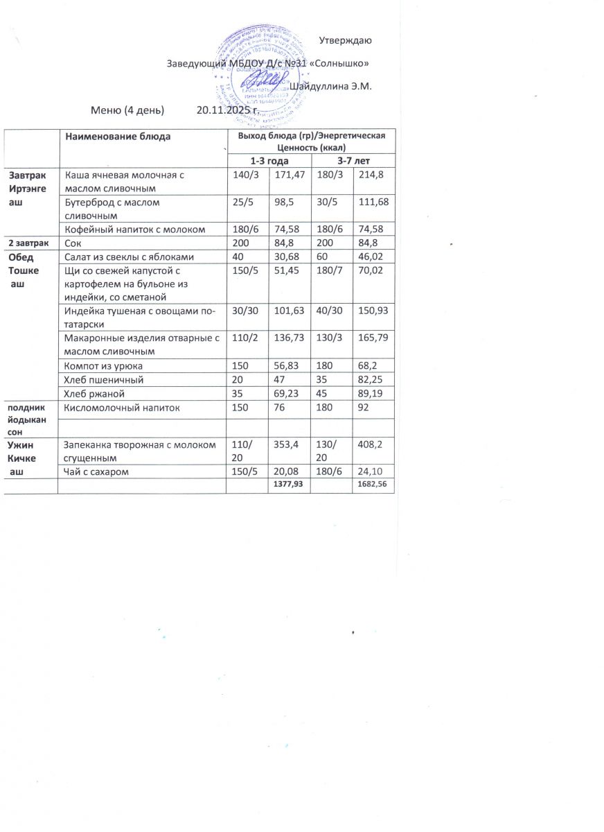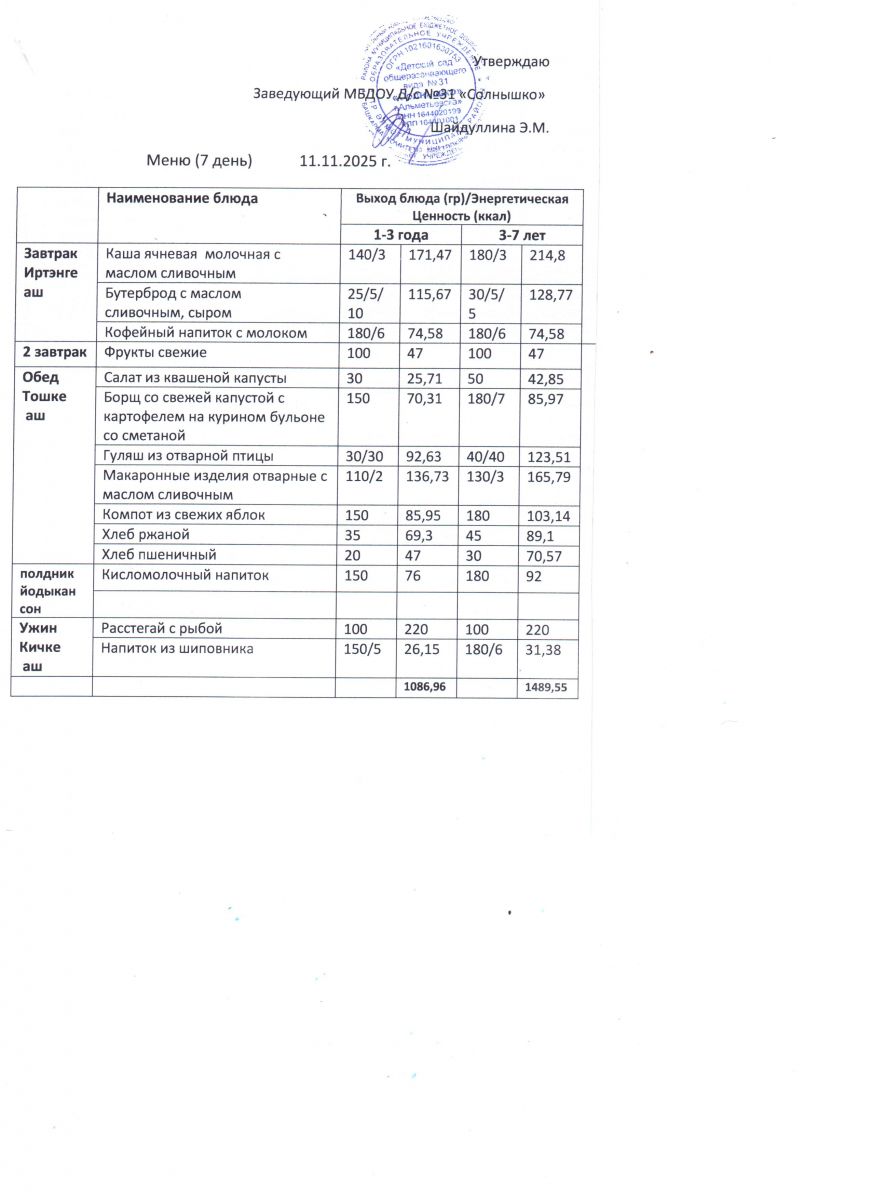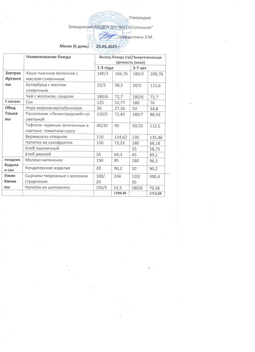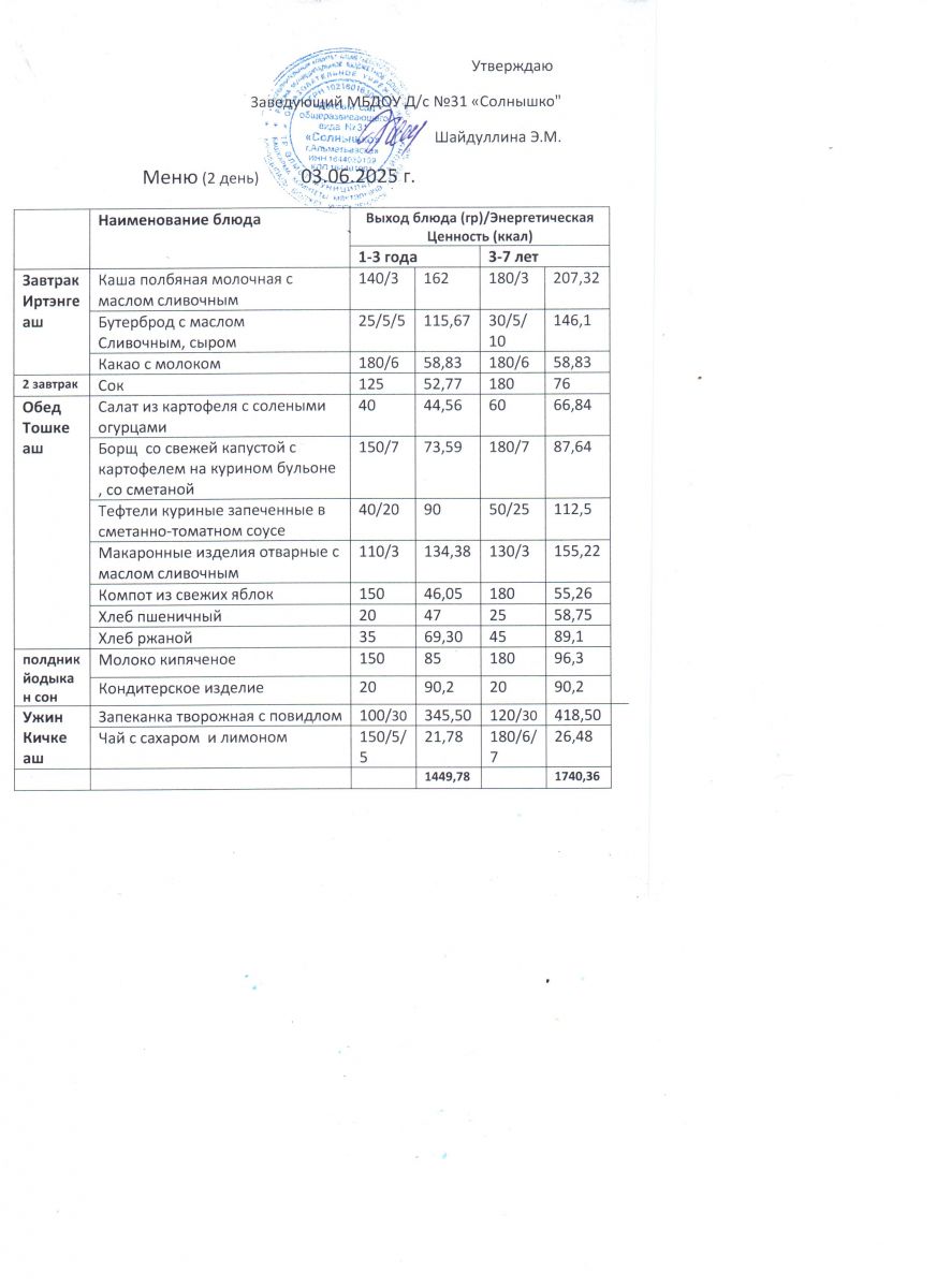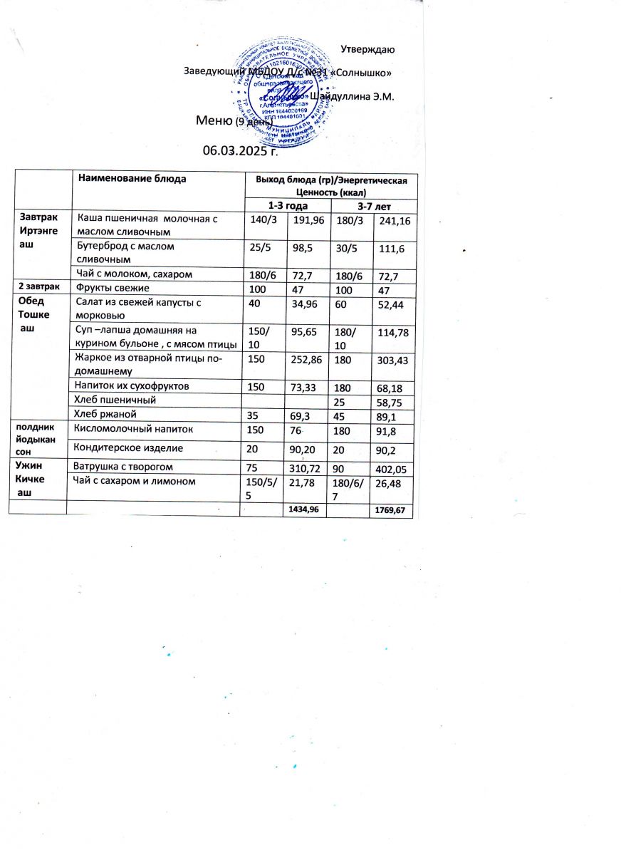Меню ежедневного горячего питания