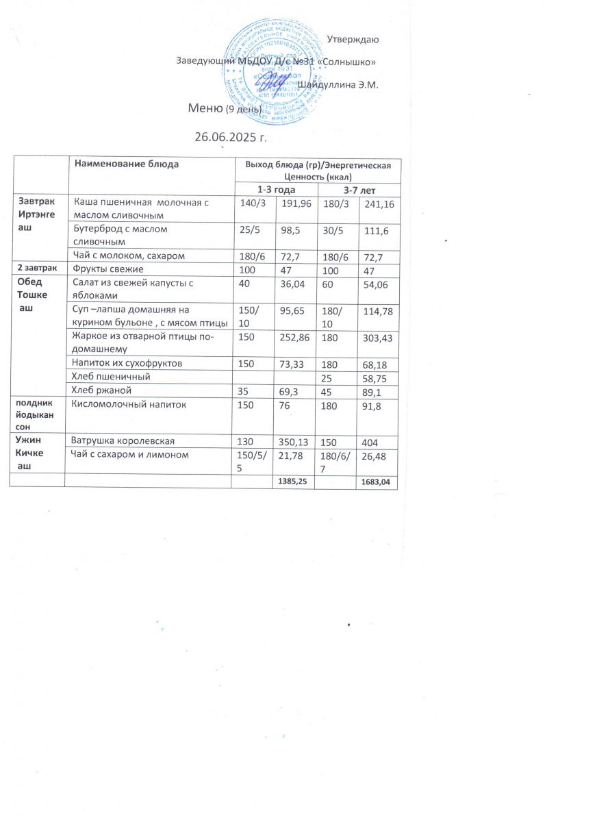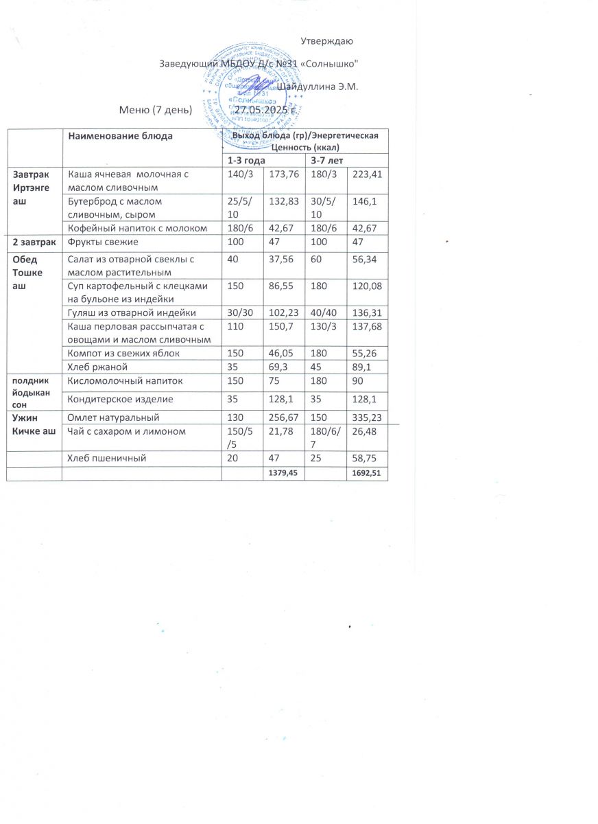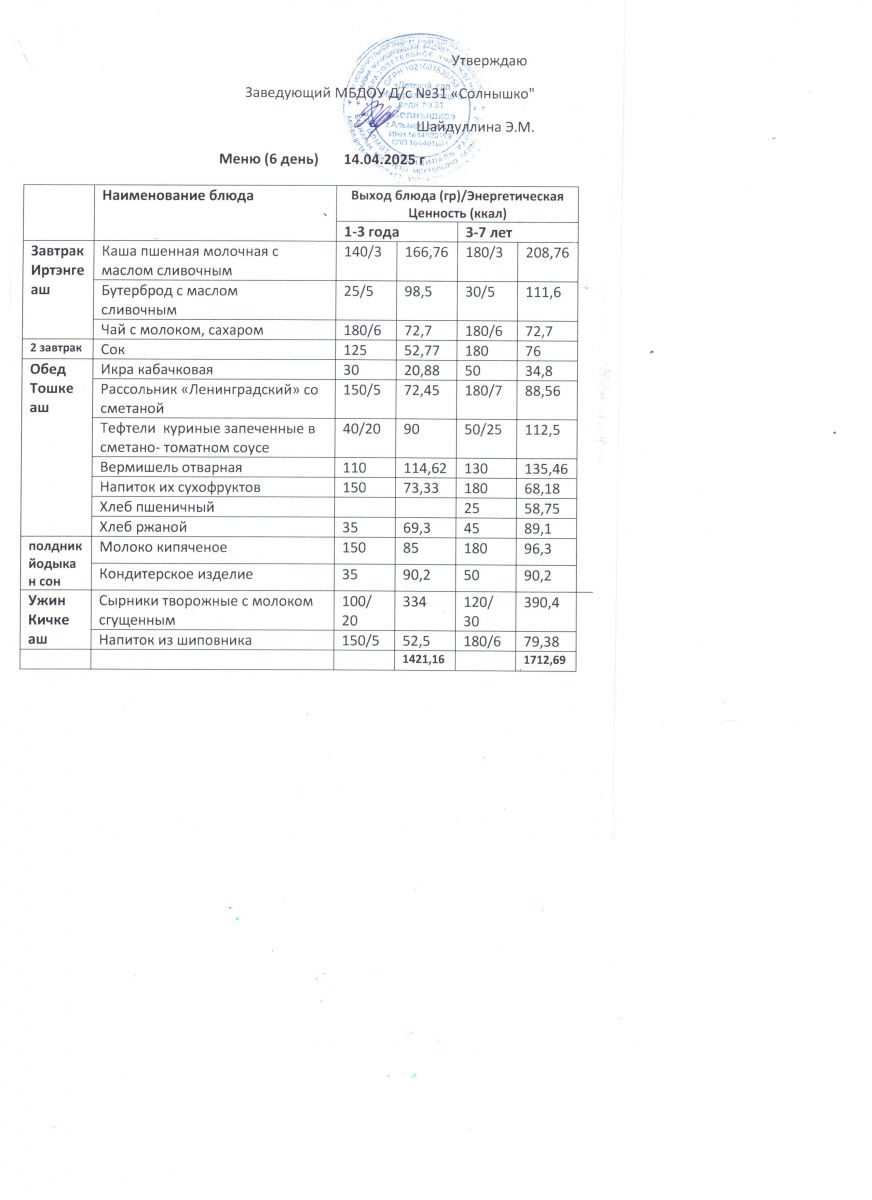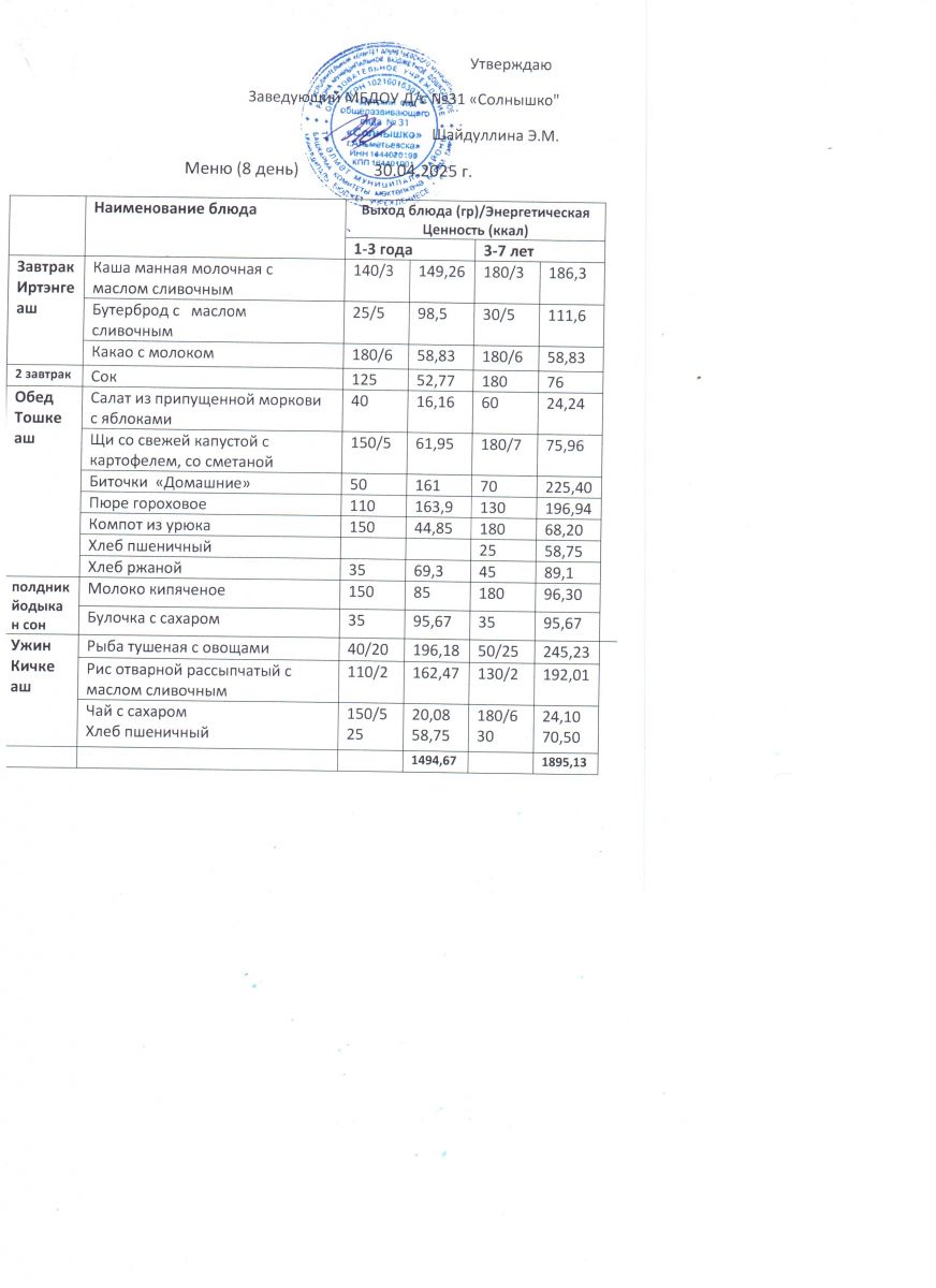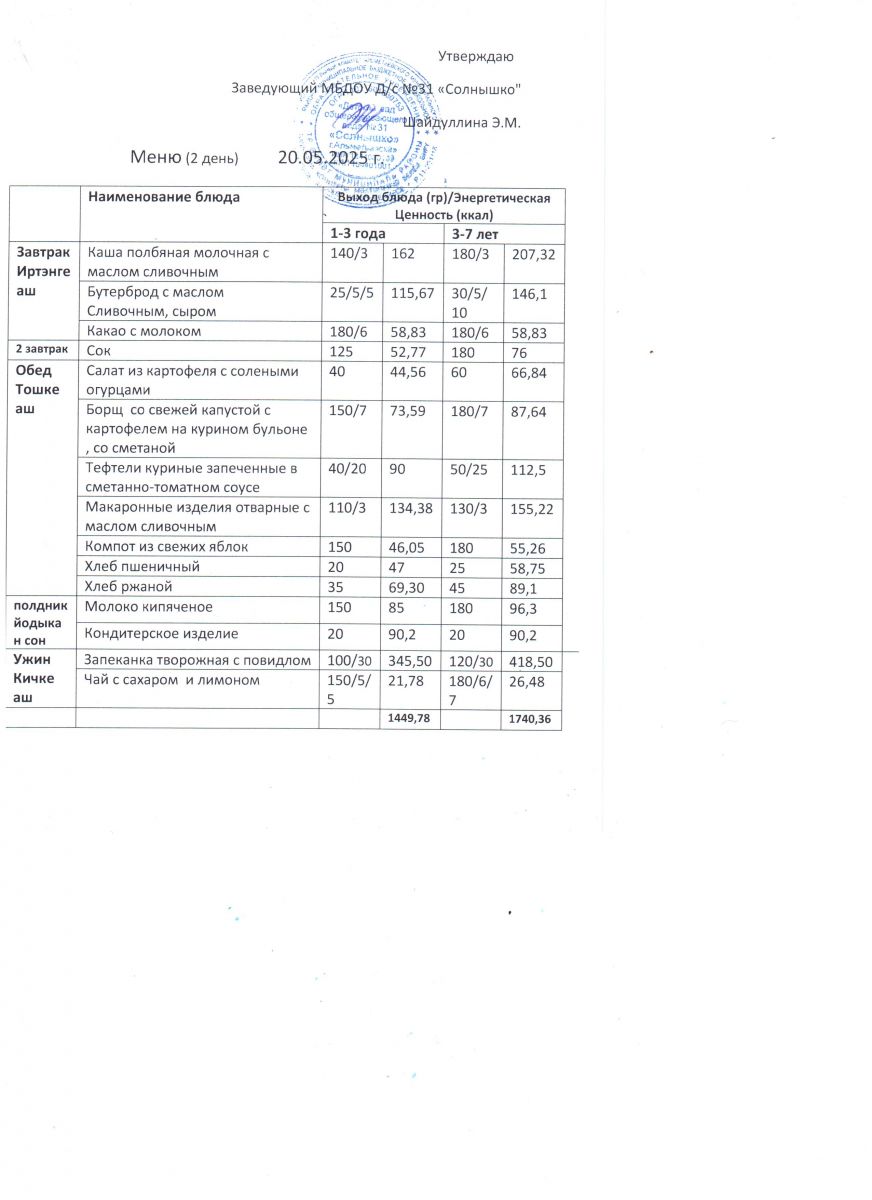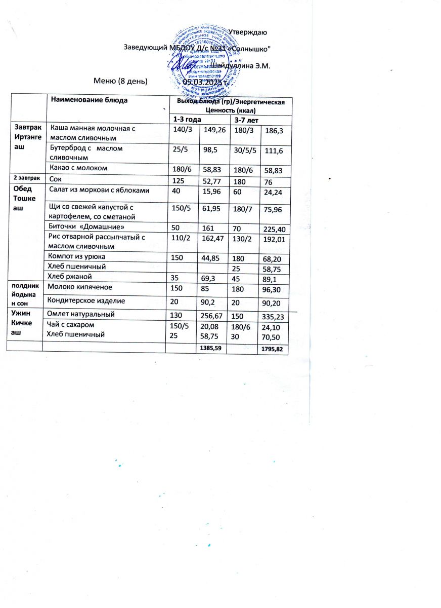 Меню ежедневного горячего питания