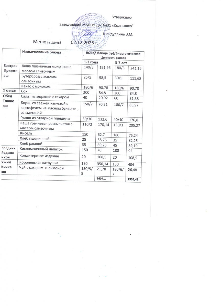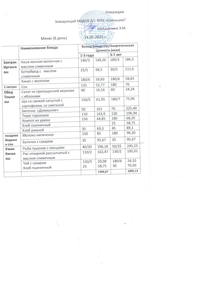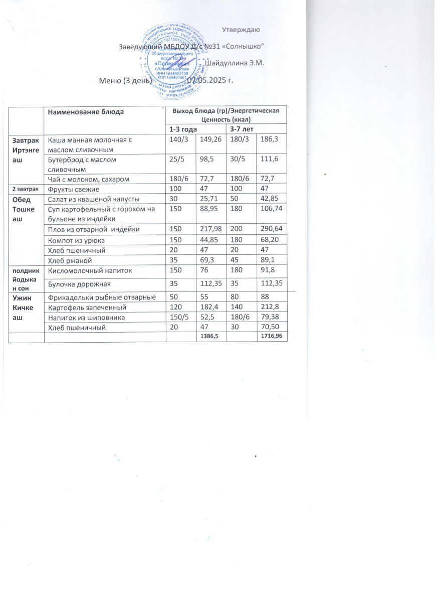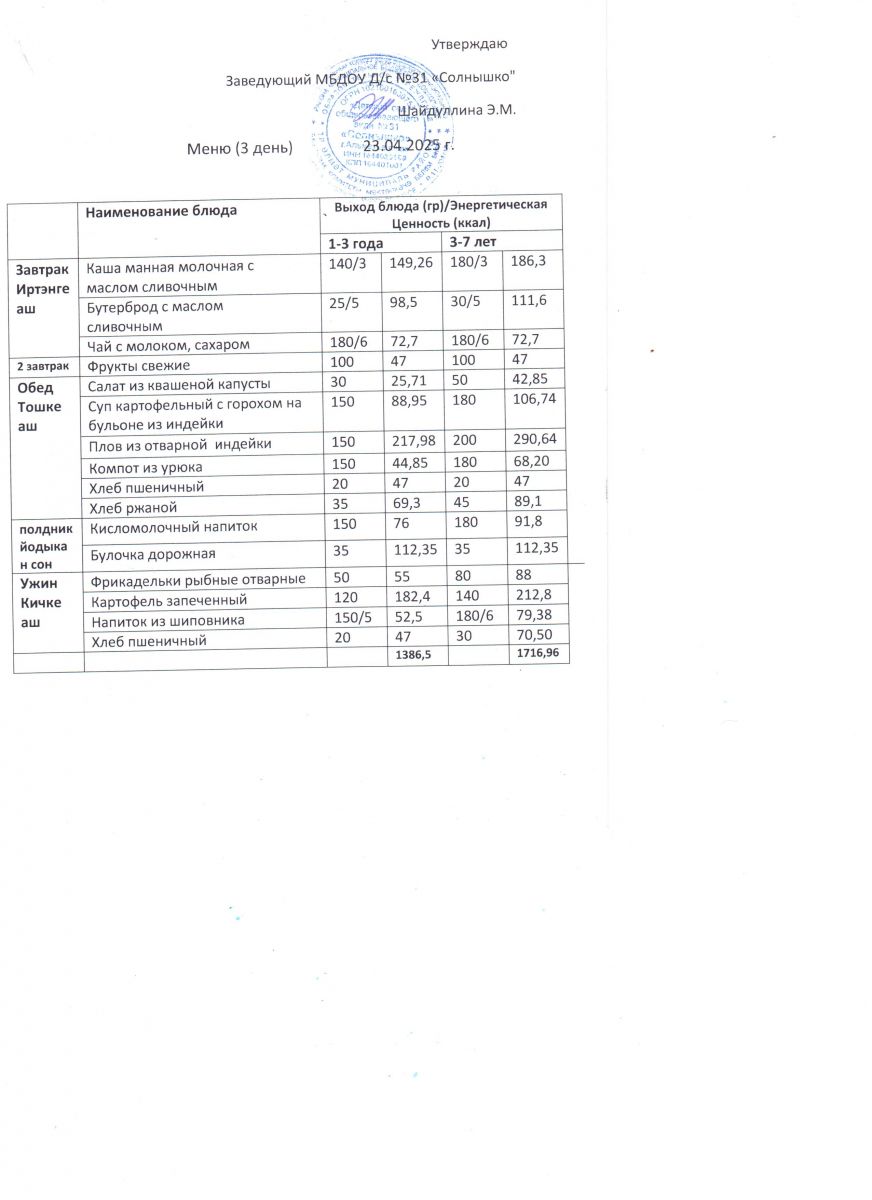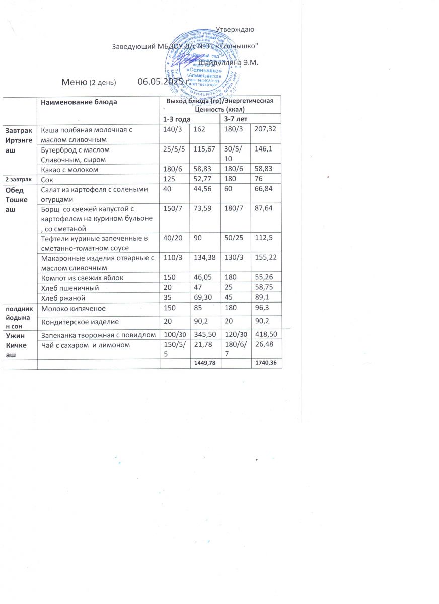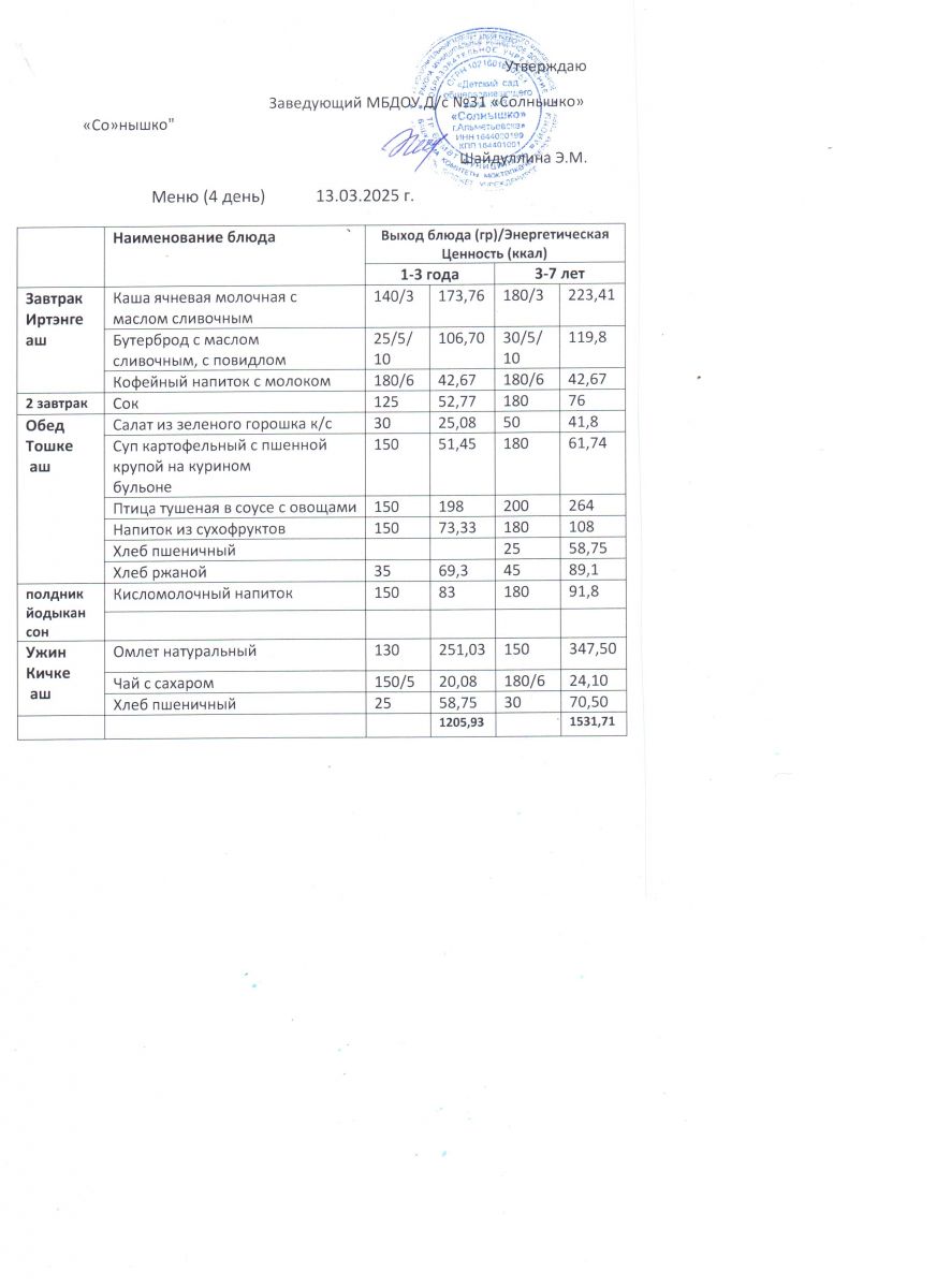 Меню ежедневного горячего питания