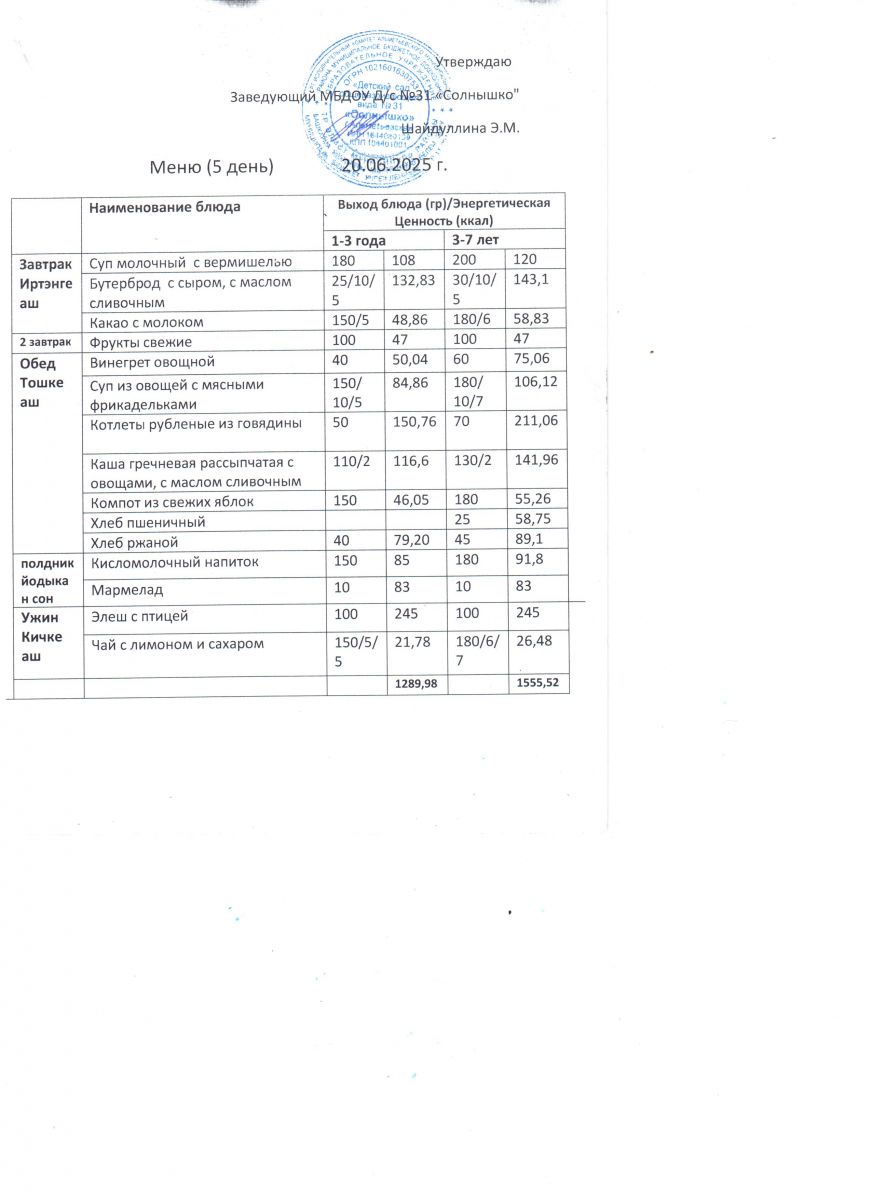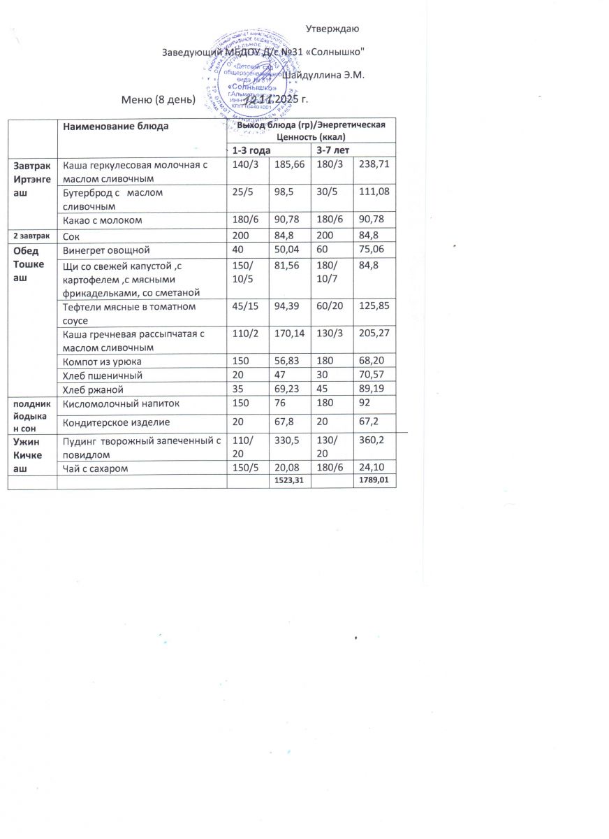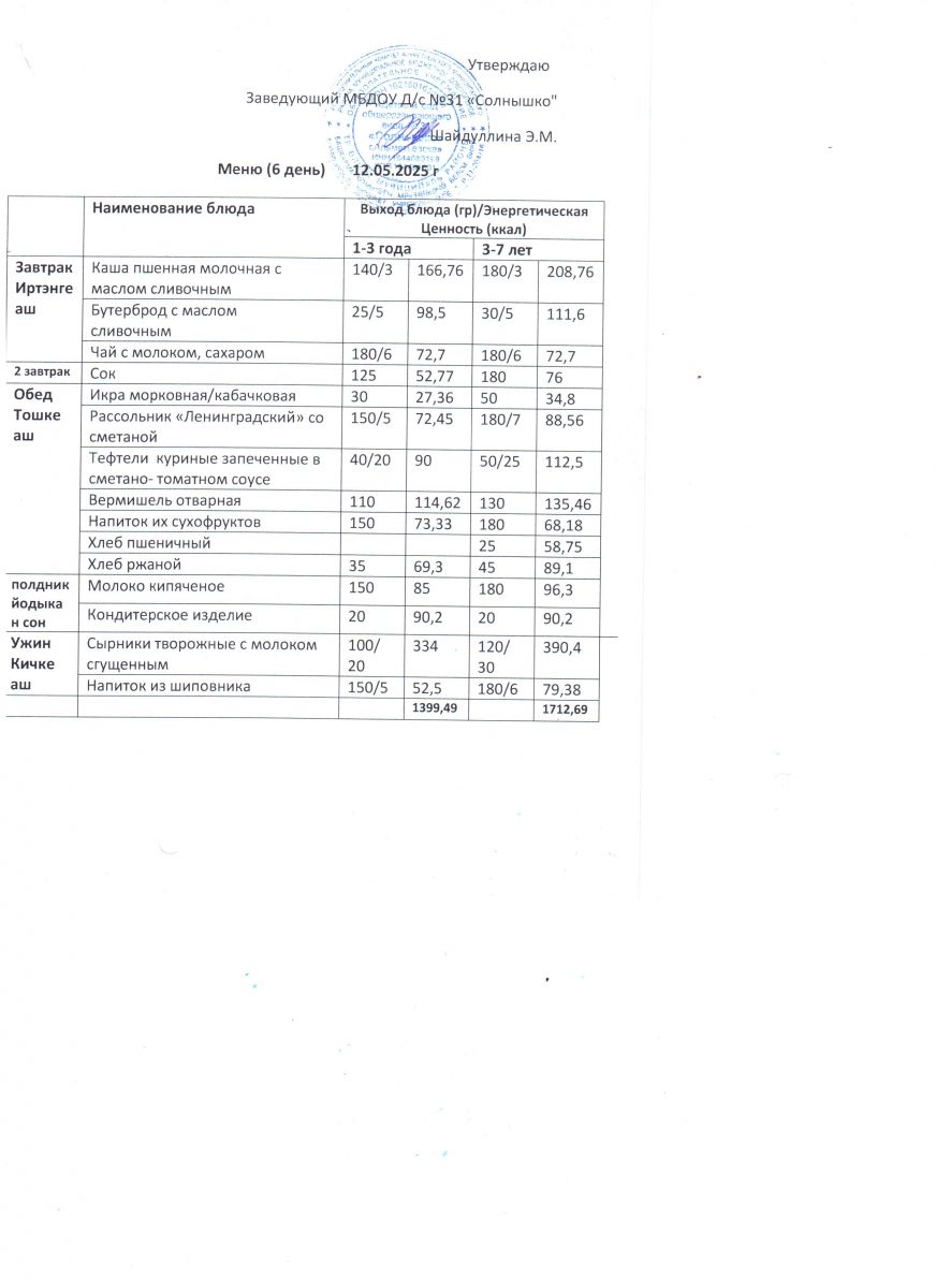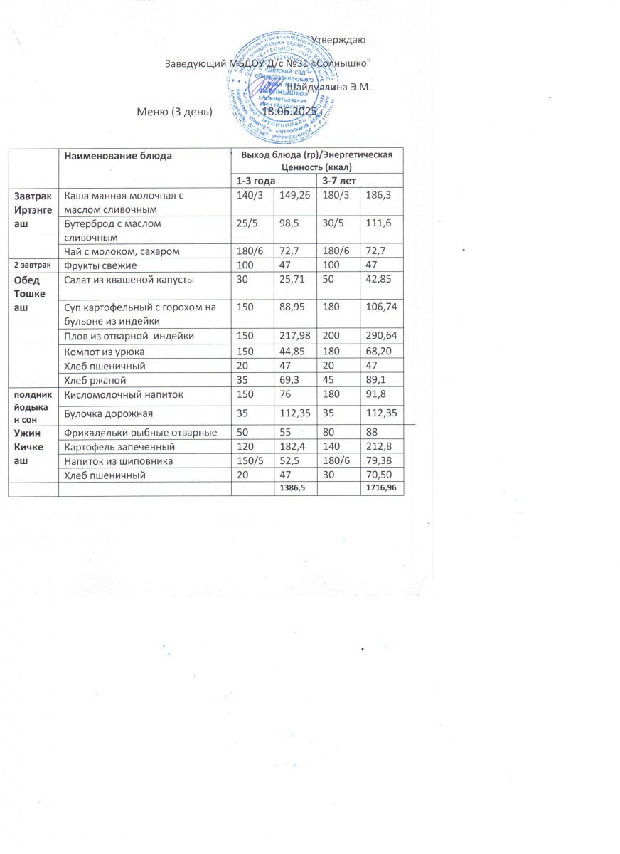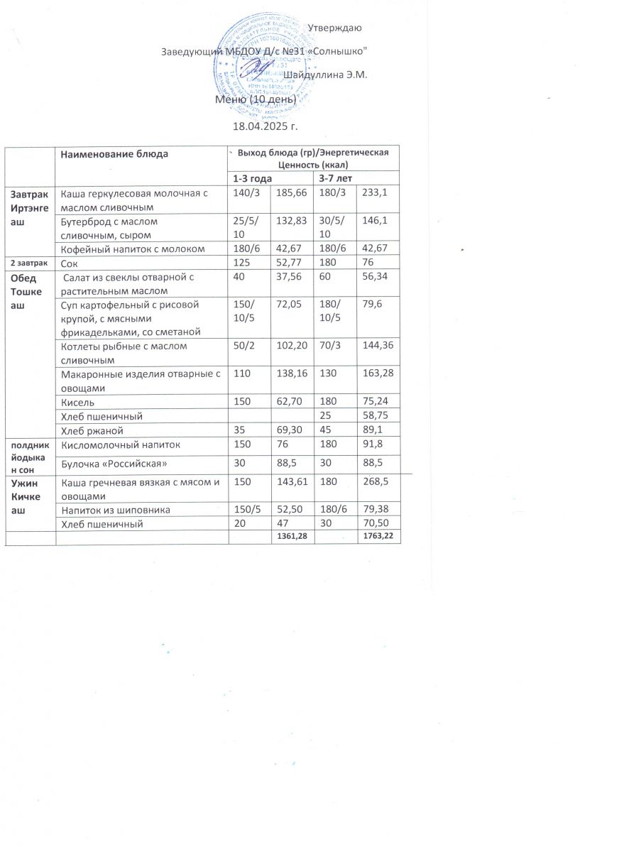 Меню ежедневного горячего питания