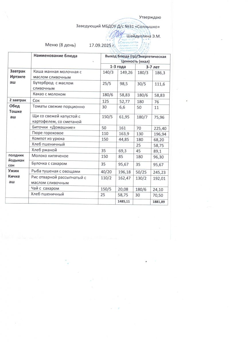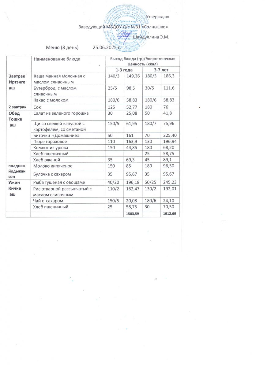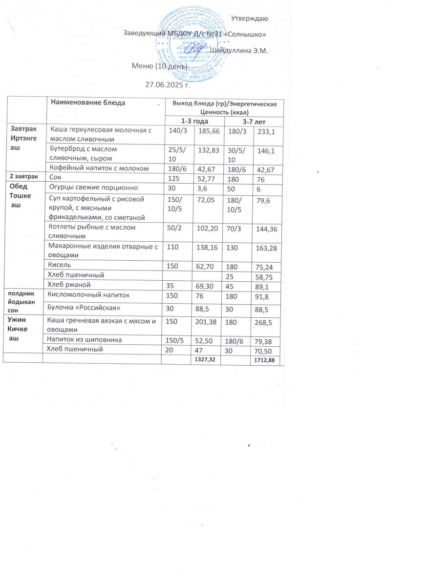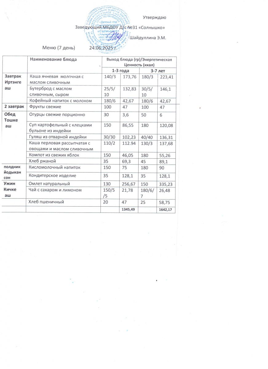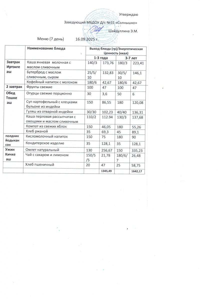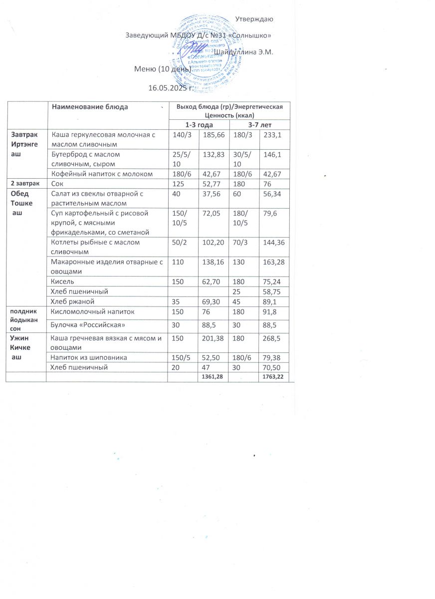Меню ежедневного горячего питания
