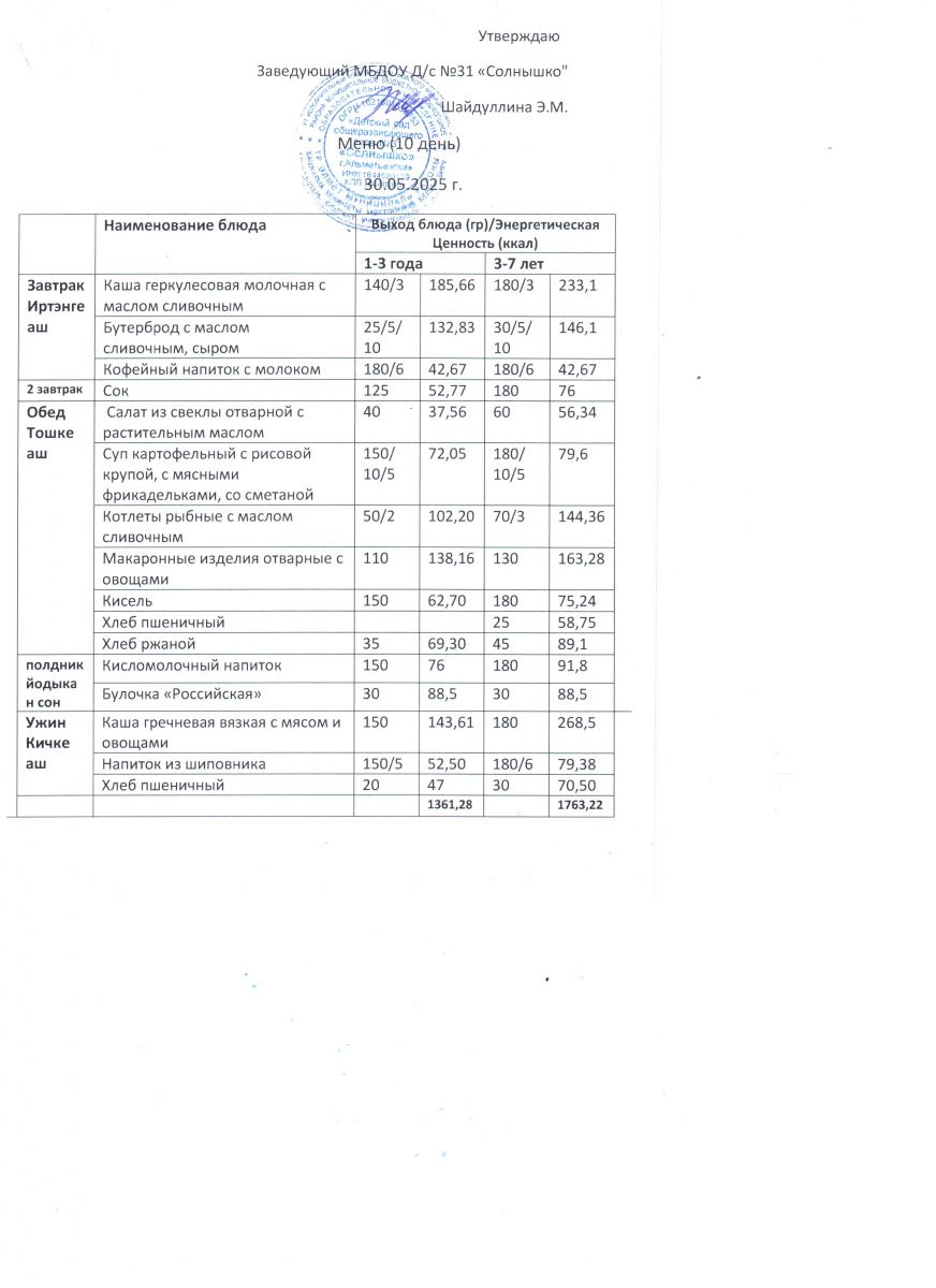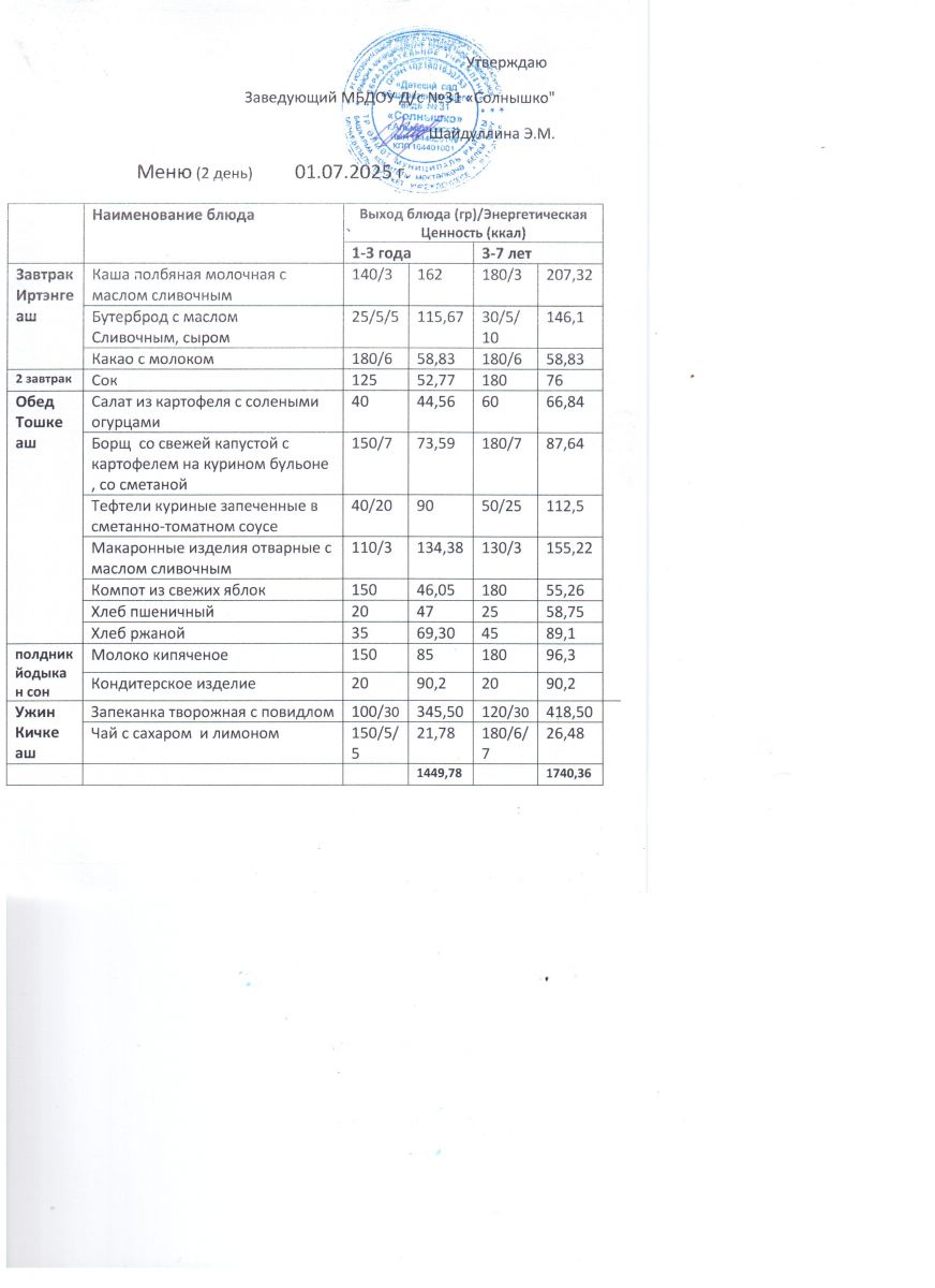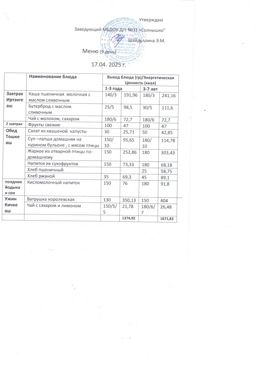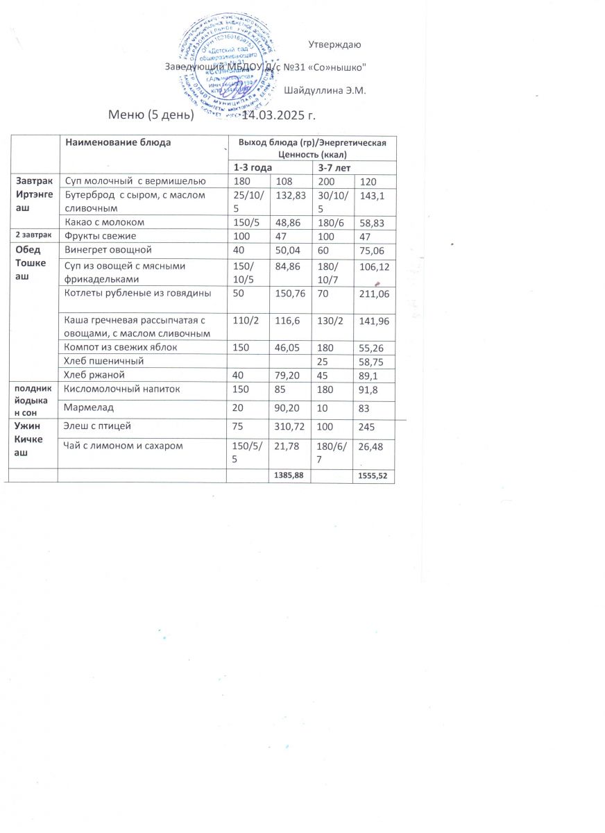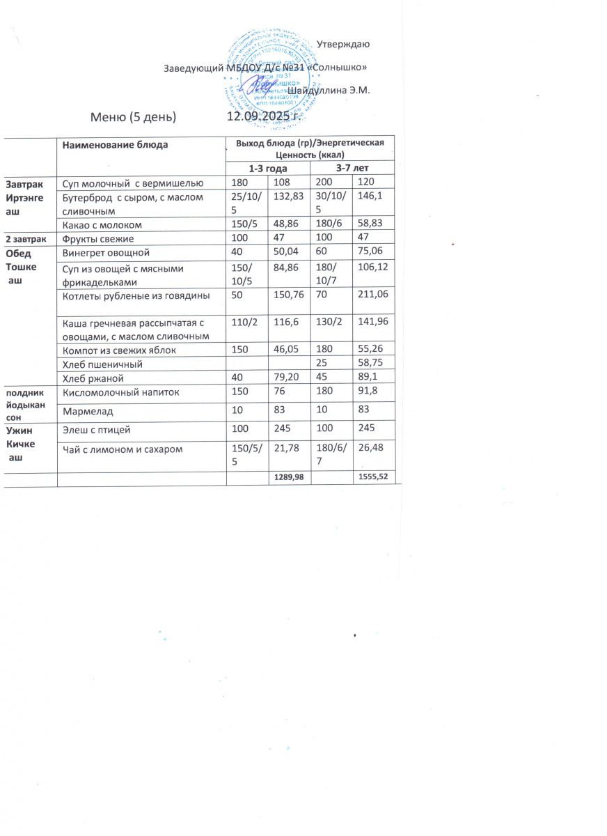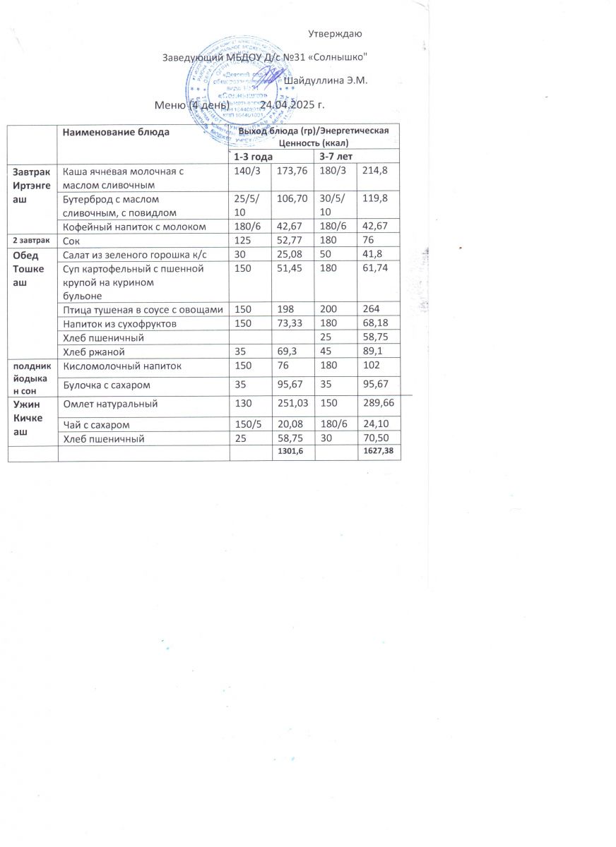 Меню ежедневного горячего питания