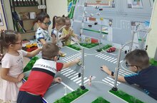 В детском саду прошла профилактическая беседа по правилам дорожного движения с инспектором по пропаганде БДД ОГИБДД ОМВД России по Альметьевскому району Курамшина И.И. Воспитанники вспомнили как правильно нужно переходить проезжую часть, для чего нужен световозвращающий элемен, к чему приводит если не пристегиваться ремнями безопасности в автомобиле. Для закрепления был знаний был показан мультфильм по ПДД с портала "САКЛА".