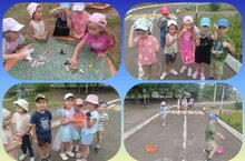 Ребята из группы "Ладушки" вспомнили о полезности всех фруктов, овощей и ягод. Дети рассказали истории походов в лес, огород за полезнейшими из самых полезных, вспомнили стихи и загадки. А итогом стало рисование разноцветными мелками на асфальте самых вкусных для ребят фруктов и овощей.