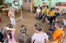 Дети посмотрели презентацию «Путешествие Капельки», где в доступной форме узнали о круговороте воды в природе. Они также вспомнили, где ещё можно встретить воду — от крана на кухне до морей и океанов.
