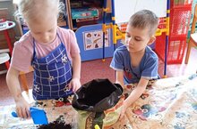 Дети средней группы"Цыплята"вместе с воспитателем решили разведение "огорода на подоконнике"сделать традицией. Поэтому посадили лук, посеяли овёс. Побеседовали о том, что нужно для того, чтобы они хорошо росли. Конечно же вода, солнечный свет, рыхление почвы ответили ребята. Будем ухаживать, следить за тем, когда лук даст первые зелёные стрелки, когда прорастет овёс, отмечать в календаре. Ещё у нас есть черенки комнатных растений, которые уже дали корни, их мы тоже с детьми посадим, чтобы в нашей группе радовали нас своей красотой яркие цветы.