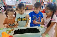 В средней группе "Фантазеры" ребята посадили лук, укроп, петрушку, провели беседу о правилах ухода за растениями, поделились друг с другом впечатлениями о проведении весенних работ дома по подготовке с родителями рассады на огороды, спели песни о весне, завели календарь наблюдений за ростом растений. Каждый день ребята будут следить за огородом на подоконнике