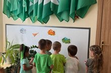 По тематической недели детского сада сегодня у «Капелек» и «Крепышей» день под названием «Зеленый-любимый цвет наших «эколят»».