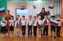 На мероприятии детям были предложены анимационные игры на интерактивной доске для закрепления пройденного. Праздник завершили торжественным звучанием гимна РФ. -