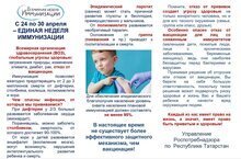 В соответствие с письмом Руководителя Управления Федеральной службы по надзору в сфере защиты прав потребителей и благополучия человека по Республике Татарстан (Татарстан) от 18.04.2022 № 07/7932 «О проведении ЕНИ-2022» Министерство образования и науки Республики Татарстан сообщает, что в период с 25 по 30 апреля 2022 года проводится Единая неделя иммунизации (далее – ЕНИ-2022).
