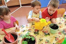 поливают, наблюдают за ростом. У нас получился замечательный " Огород ".