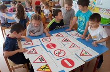 Дети подготовительной к школе группы "Фантазеры" ведут активную работу по изучению правил дорожного движения. В командных играх ребята закрепляют знания о дорожных знаках, решают практические задачки, делятся друг с другом своими наблюдениями