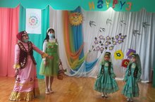 Һәр ел саен уздырыла торган Нәүрүз бәйрәменең быелгысы да бик матур узды. Ул театральләштерелгән тамаша белән башланып китте һәм кызыклы милли уеннар, җыр-биюләре белән дәвам итте. “Нәүрүз” бәйрәменә һәр төркем балалары уен, бию, шигырь яисә җыр әзерләп килгәннәр иде. Бәйрәмгә озак та көттермичә Нәүрүзбикә үзе дә килеп җитте. Ул балалардан табышмакларга жаваплар да эзләтте, татар милли уеннарын да уйнатты. Һәр баланың йөзе яз кояшы кебек нурлы, көләч һәм шат иде. Әлеге гүзәл язгы бәйрәмне музыка җитәкчеләре Гимранова Г.Ш., Хасаншина Л.И. һәм татар теле тәрбиячесе Шайгарданова Р.Х. оештырган иде.Бу бәйрәм төрле халык балаларын тагын да ныграк дуслаштырып,төрле милләт балаларын берләштереп, үз ара тату,туган булып яшәргә өйрәтүче бәйрәм буларак балаларың күңеленә кереп калды.