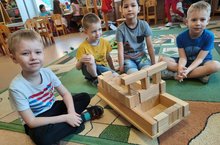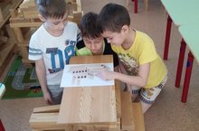 В старшей группе "Любознайеи" Закрепляли с помощью построек из деревянного конструктора и различали геометрические формы: куб, брусок, призма, кирпичик, цилиндр. В постройке через игру с ребятами развиваем умение делать постройки соответственно принципу целесообразности;