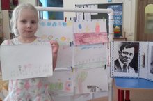 15 февраля 2019 года в старшей группе «Умники и Умницы» воспитатель Васячкина Е.В провела занятие, посвященное памяти татарского поэта «Муса Джалиль – наш герой». Дети продолжили знакомство с жизнью и творчеством великого татарского поэта. Вспомнили такие произведения как: «Петушок», «Красная ромашка», «Кукушка», «Вороватый котенок», «Мой пес», «Клятва». Затем постарались передать все впечатления от произведений в рисунках. В конце занятия дети устроили выставку рисунков по произведениям Муса Джалиля.