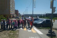 В рамках акции "Внимание дети!" педагоги МБДОУ «ЦРР-д/с №35 «Сказочная страна» Мухаметзянова Г.Р. и Кузнецова О.В. совместно со старшим лейтенантом полиции ОГИБДД ОМВД РФ по Альметьевскому району Курамшиной И.И. организовали и провели экскурсию к светофору с воспитанниками старших групп "Солнышко" и "Почемучки". Дети закрепили правила поведения на улице при переходе через дорогу. Взрослые объяснили детям, что ходить пешеходам следует только по тротуару, переходить улицу строго по пешеходным переходам. Интереснее всего для детей было поближе познакомиться с работой светофора, который играет важную роль в регулировании движения пешеходов и транспорта. Также обратили внимание на дорожные знаки, проговаривали их названия и значения. Экскурсия вызвала много ярких впечатлений и положительных эмоций, а дошколята в свою очередь пообещали всегда соблюдать правила дорожного движения.